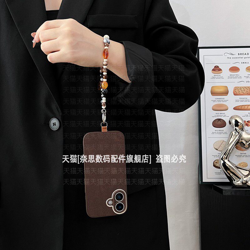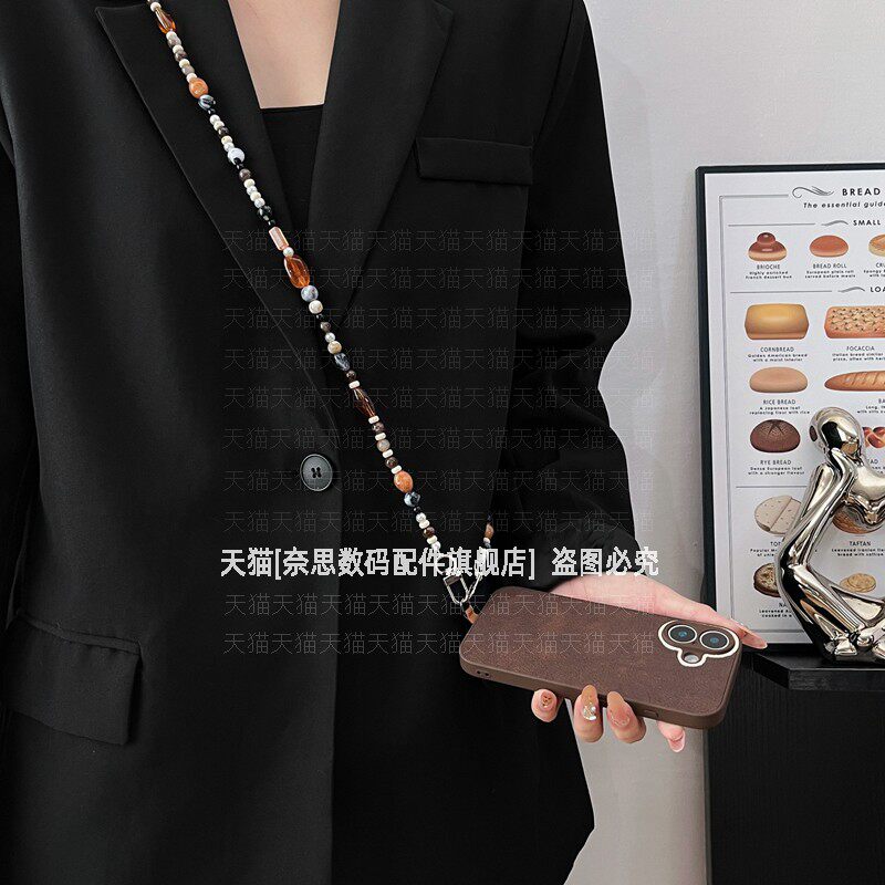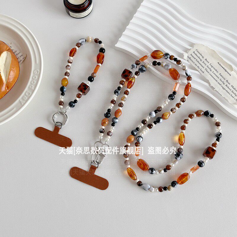 手工自制手机链琥珀串珠背带挂链斜挎可背棕色豹纹方块个性晕染小众链条复古挂绳链子包包手腕手链腕带贴片壳