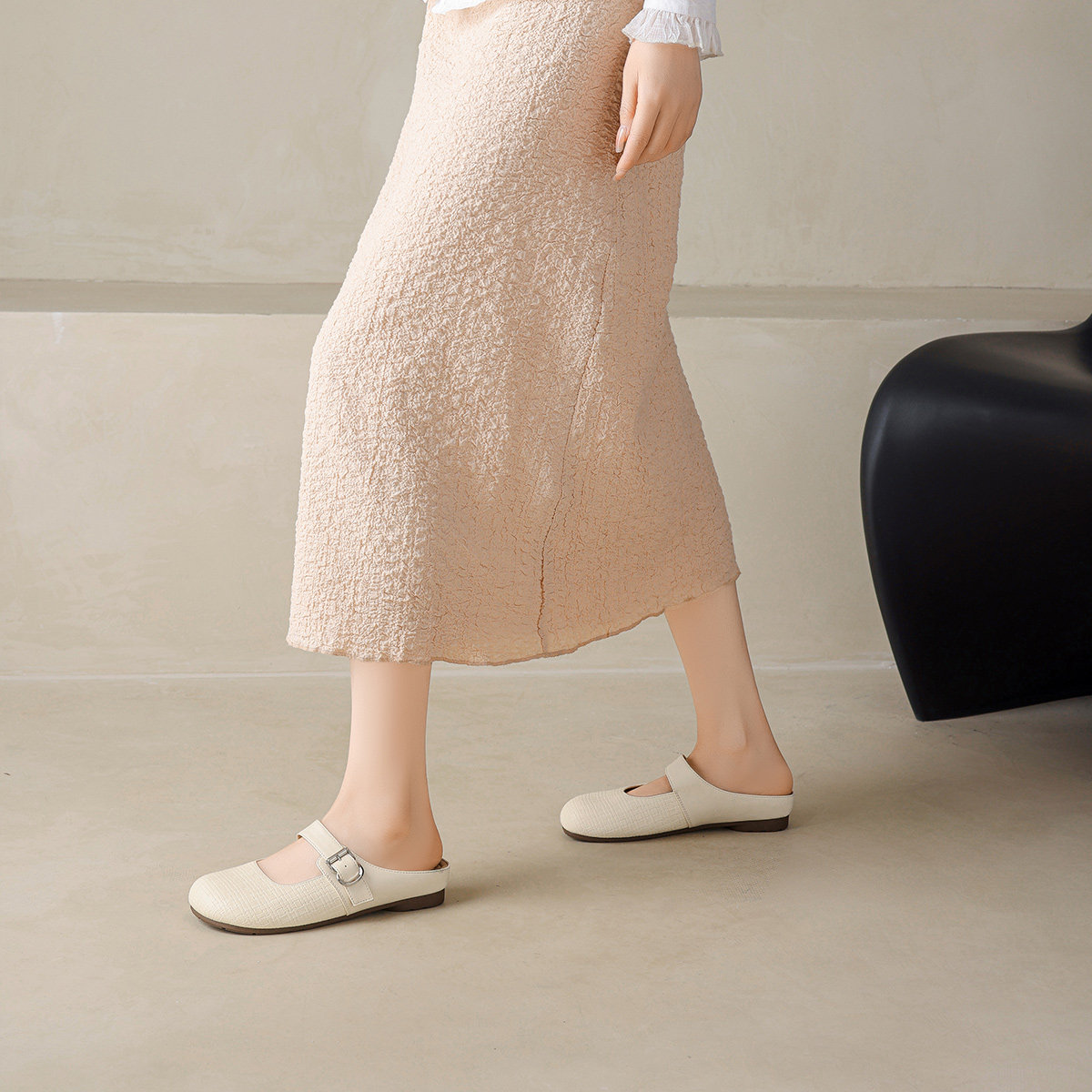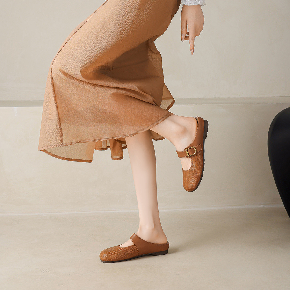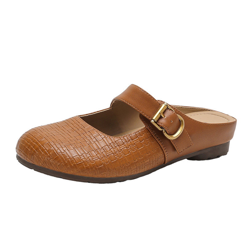 真皮包头穆勒鞋女半拖2025新款一脚蹬软面懒人平底拖鞋女夏外穿