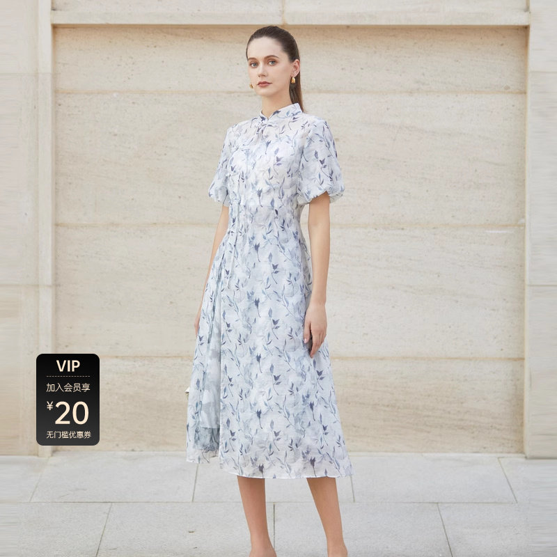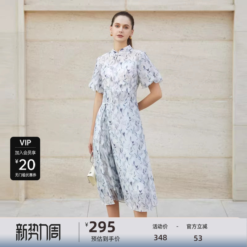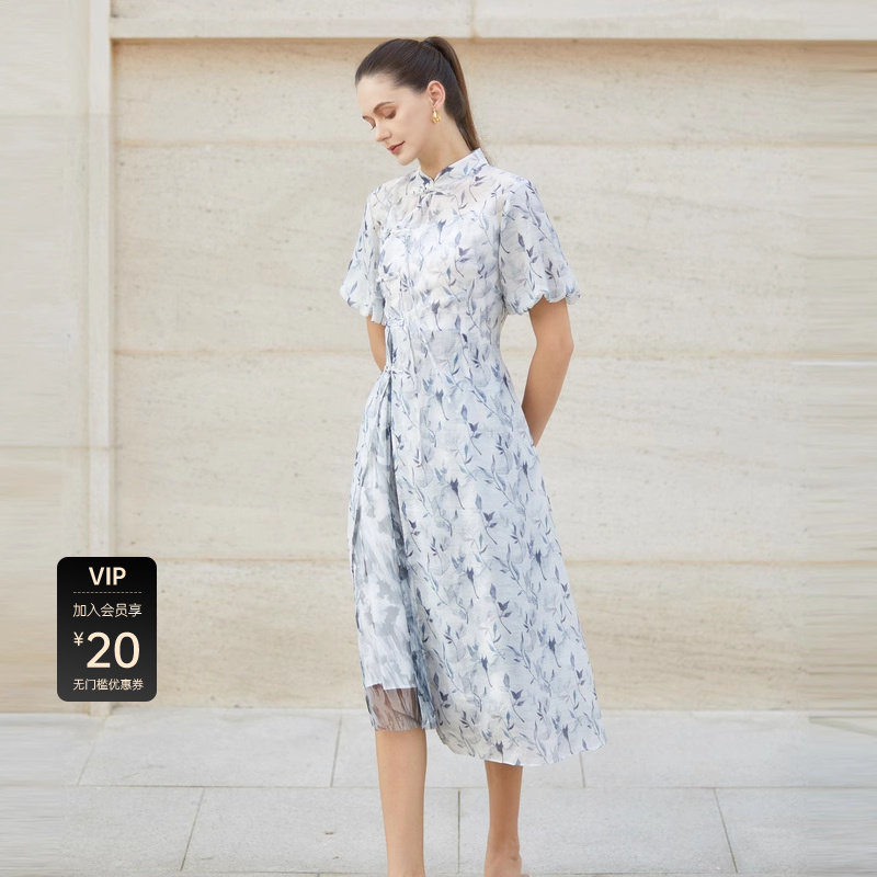 sdeer圣迪奥女装碎花盘扣新中式两件套连衣裙S232Z12AD