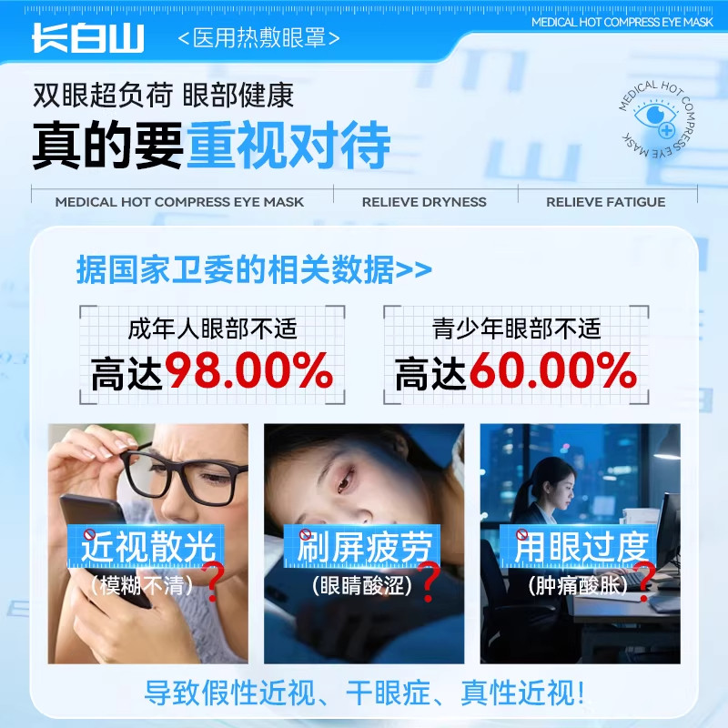 长白山医用干眼症蒸汽眼罩热敷缓解眼疲劳儿童治疗眼贴护眼黑眼圈