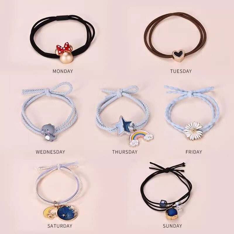 星期头绳发饰套装发绳发圈头饰女生实用高弹力耐用可爱发饰礼物