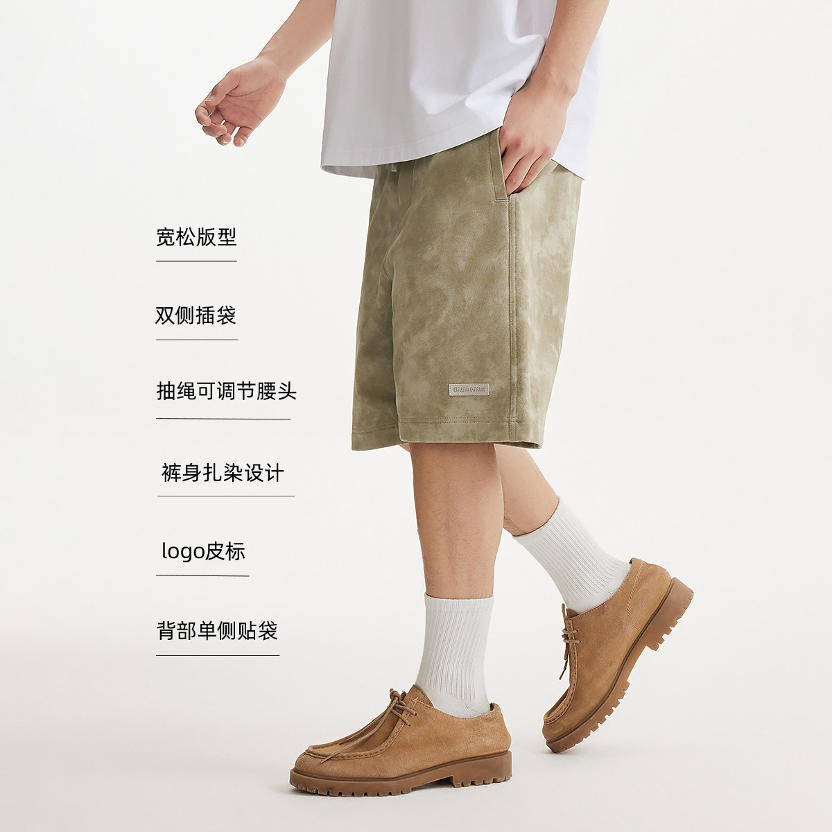 logo皮标 裤身扎染设计 背部单侧贴袋