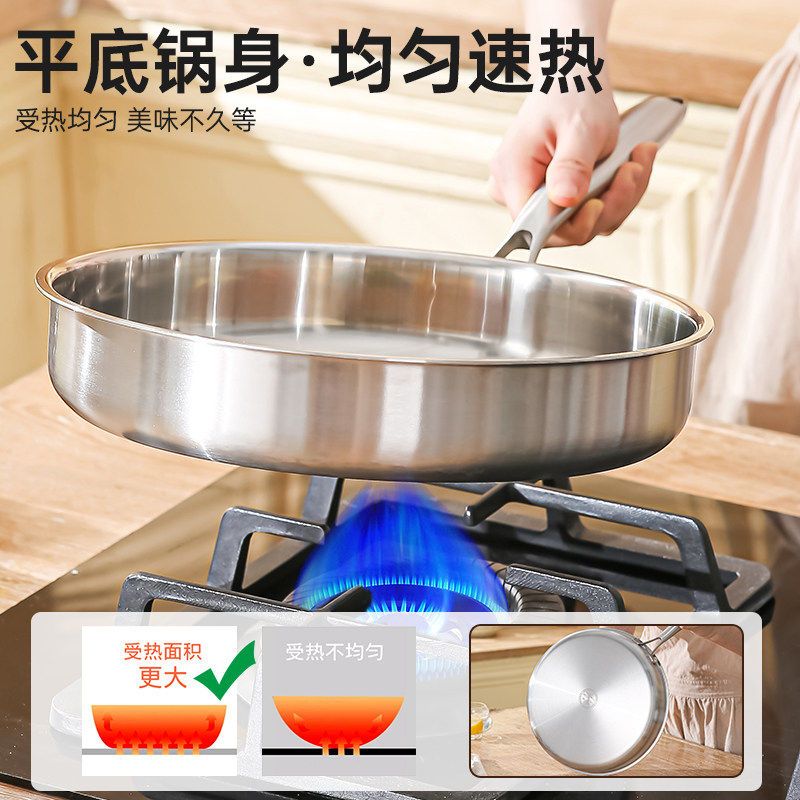 苏泊尔特厚食品级316L不锈钢平底锅家用不粘锅煎锅电磁炉煎蛋锅U