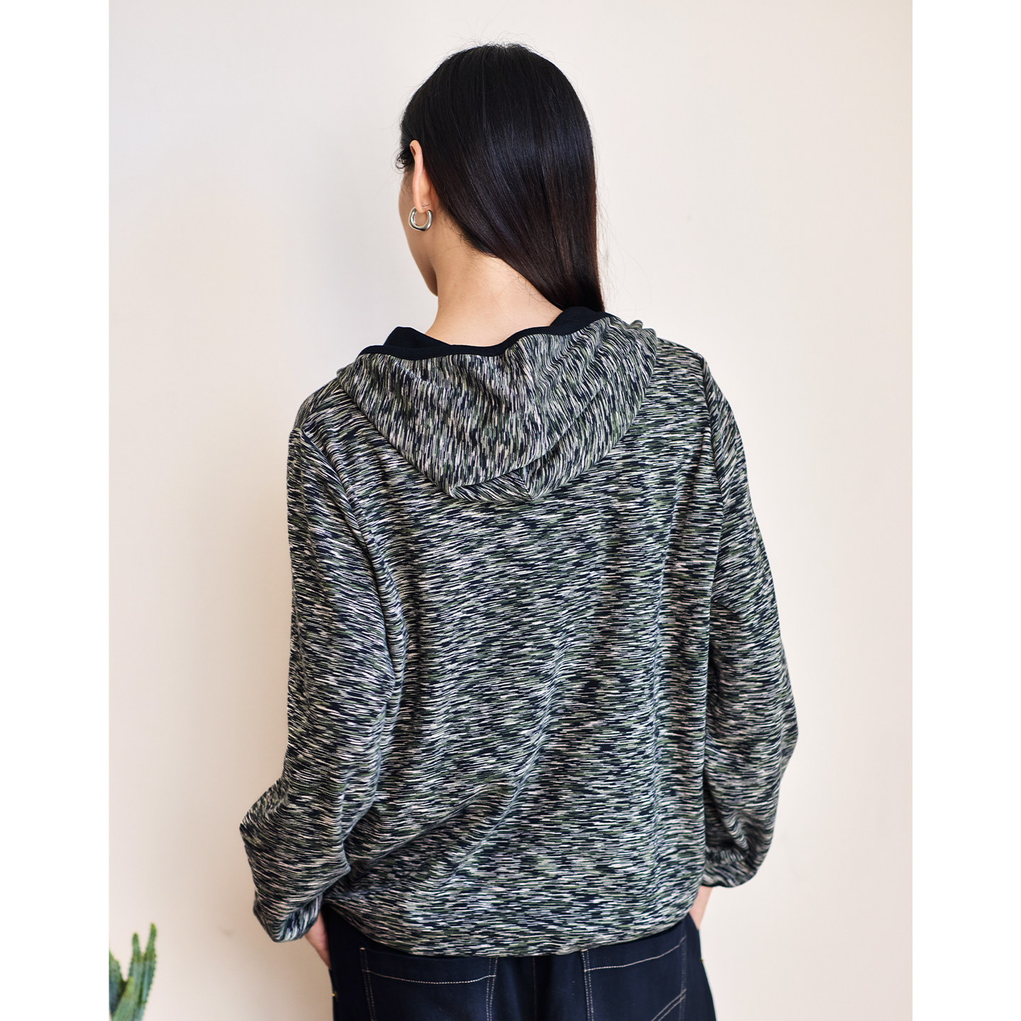 无色无味秋季连帽针织衫女2025新款肌理棉设计感小众长袖宽松上衣
