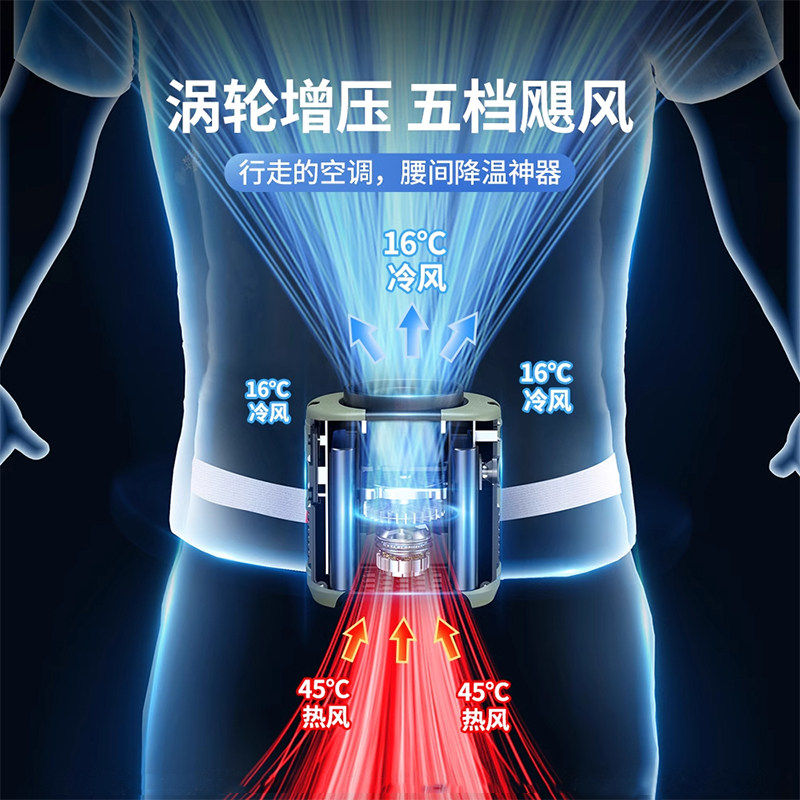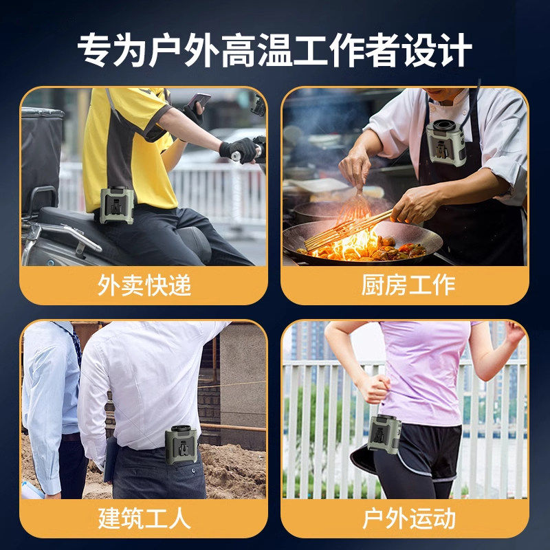 夹腰间挂腰风扇随身便携式户外工地降温神器高温作业制冷空调可穿戴消暑夏天厨房桌面可充电宝小涡轮挂脖腰带