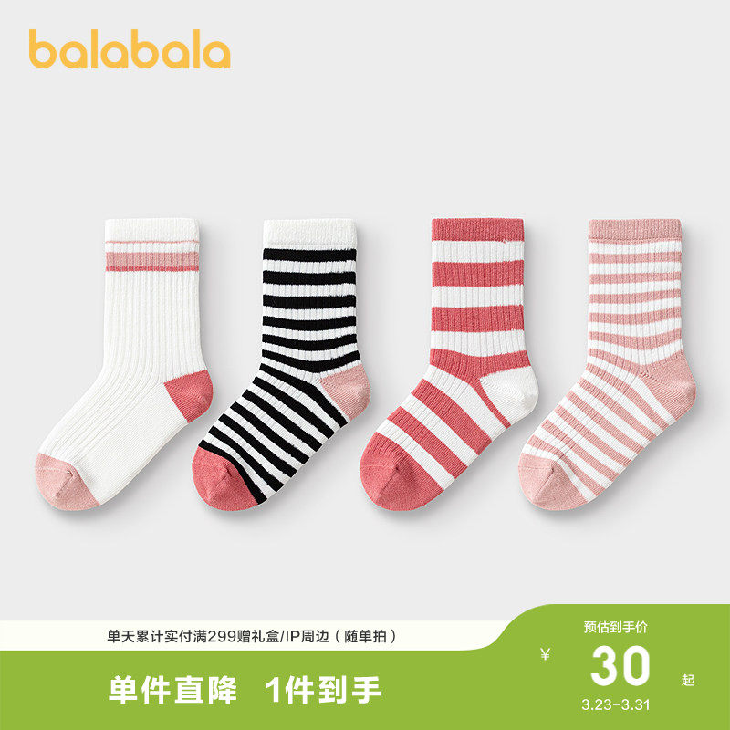 巴拉巴拉儿童袜子棉春秋新款潮流条纹小中大童男女童中筒袜四双装
