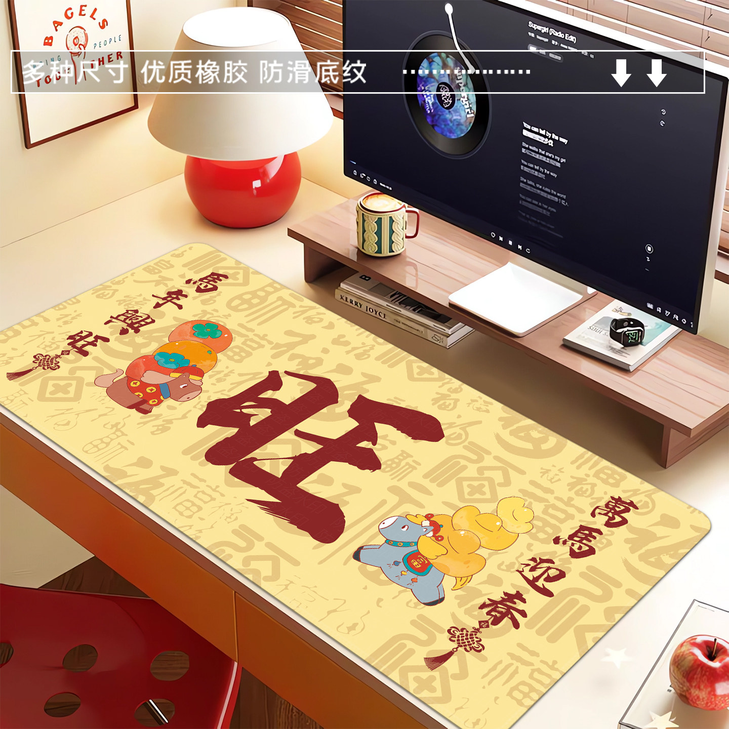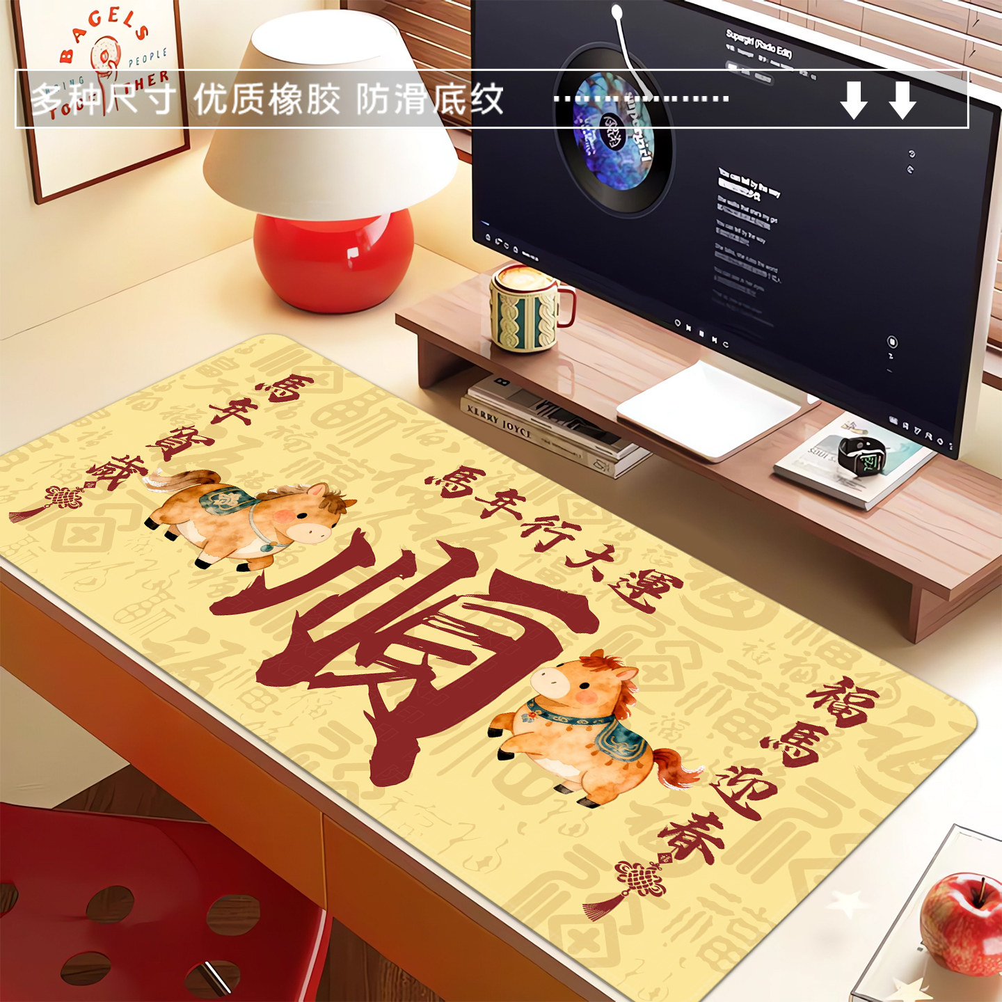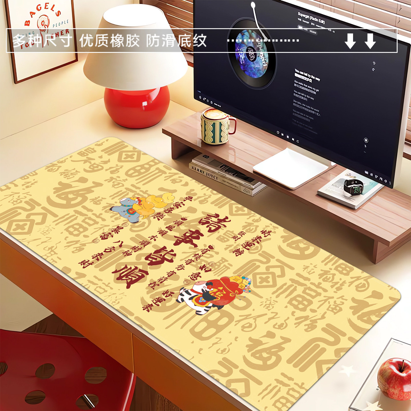 鼠标垫超大号女生高颜值办公室桌垫键盘垫护腕滑鼠垫好运文字定制