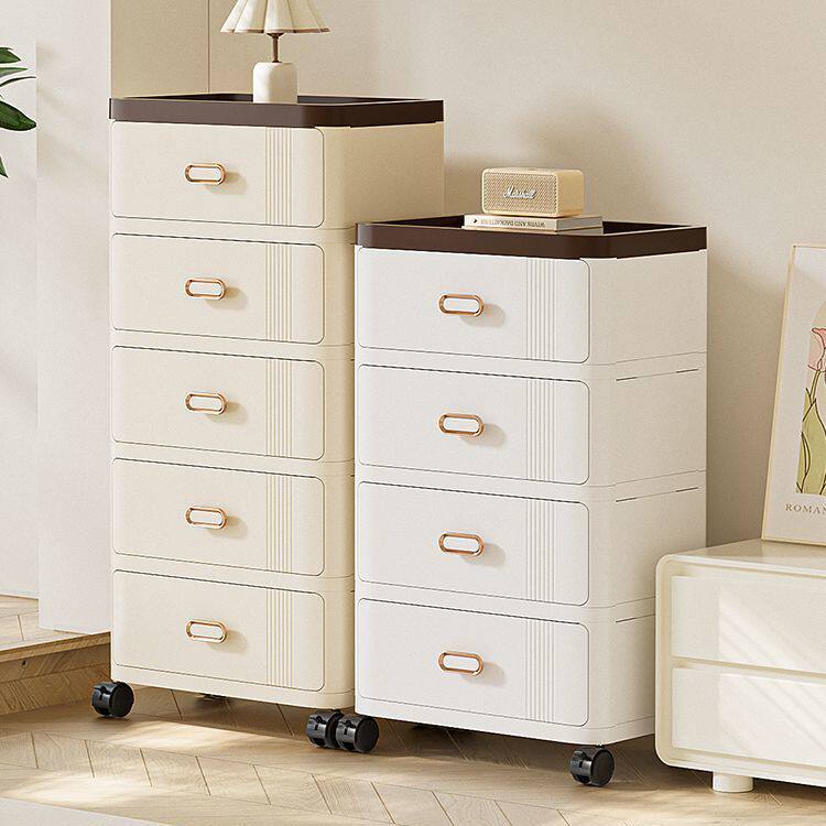 抽屉式收纳柜多层塑料家用杂物整理储物柜可移动床头柜带轮简约