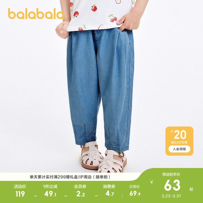 巴拉巴拉童装儿童裤子男童长裤女童夏装薄款2026休闲牛仔裤防晒潮