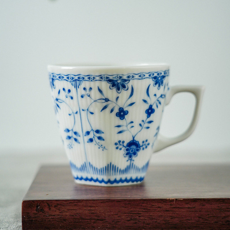 MinoYaki 花凛平边唐采咖啡杯日本进口北欧风轻奢陶瓷马克杯送礼