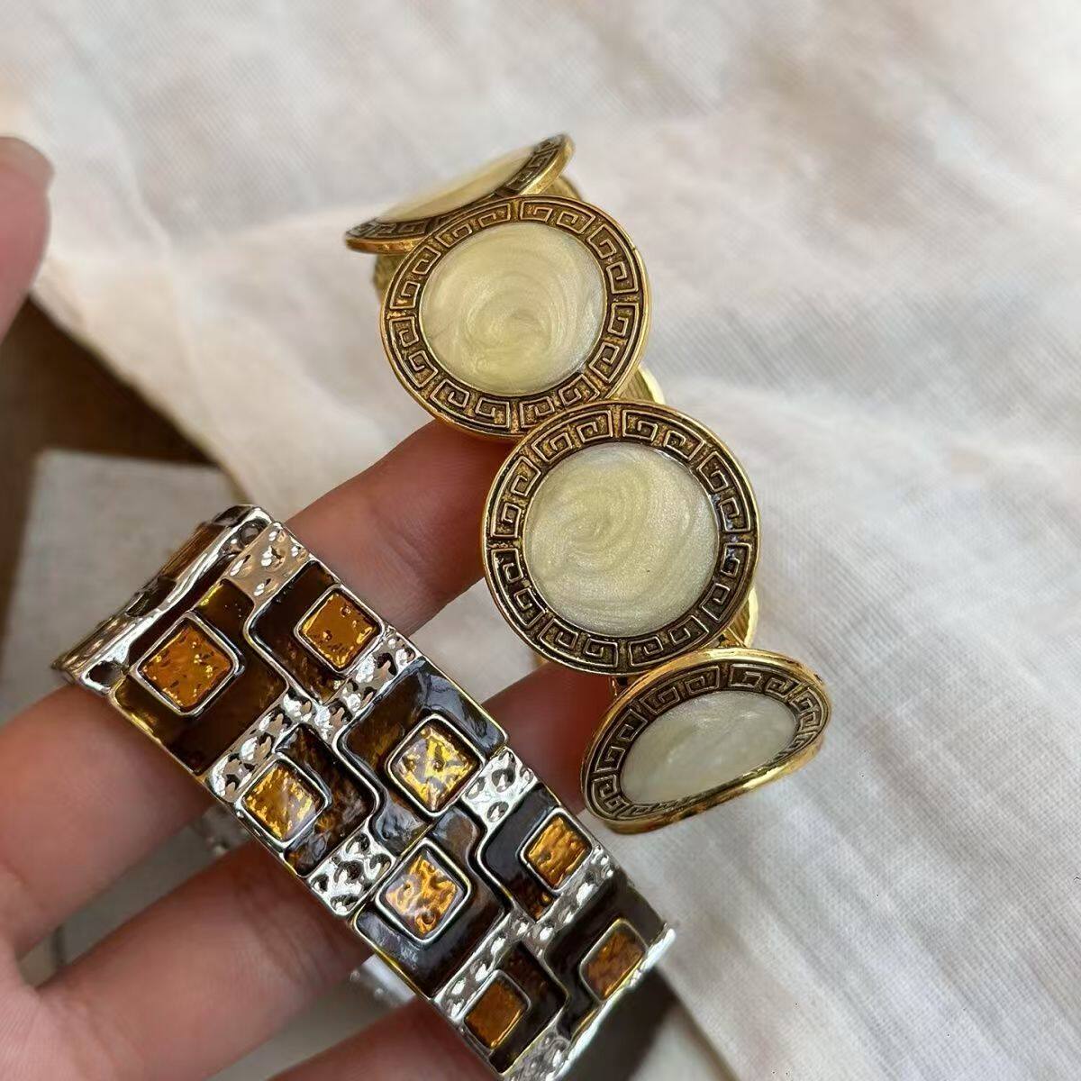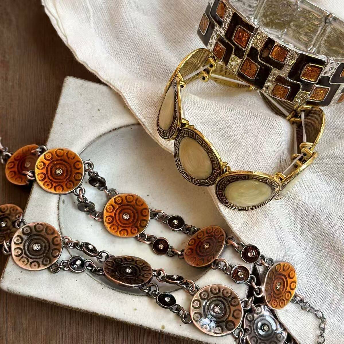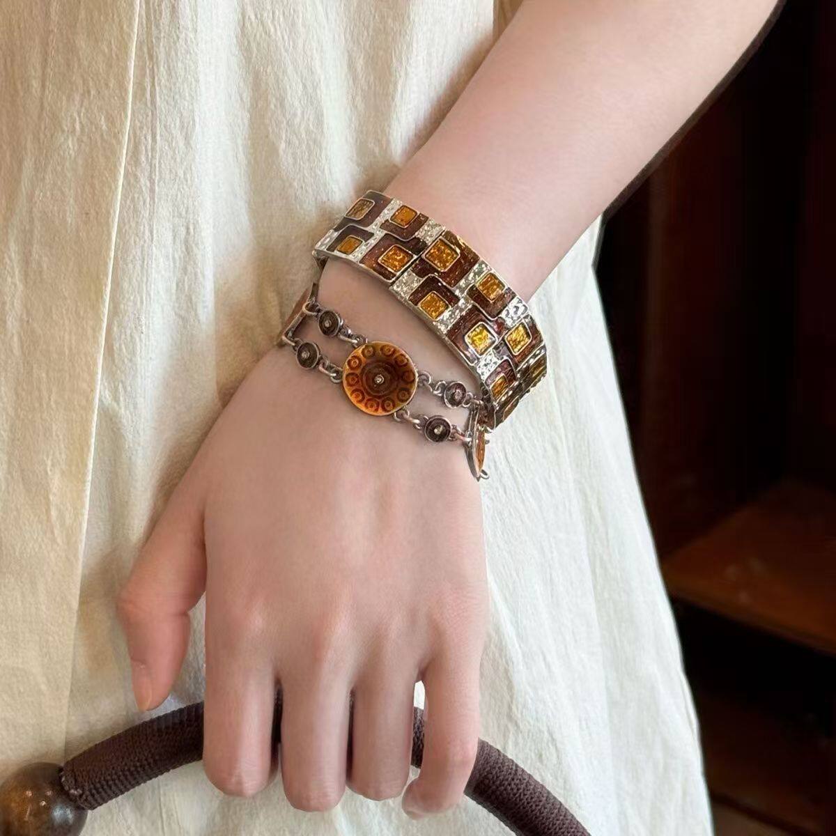 复古做旧宽边滴釉手镯女中古vintage轻奢高级感手环小众设计手饰