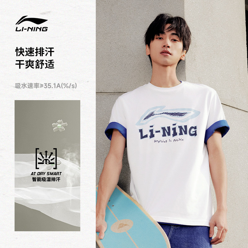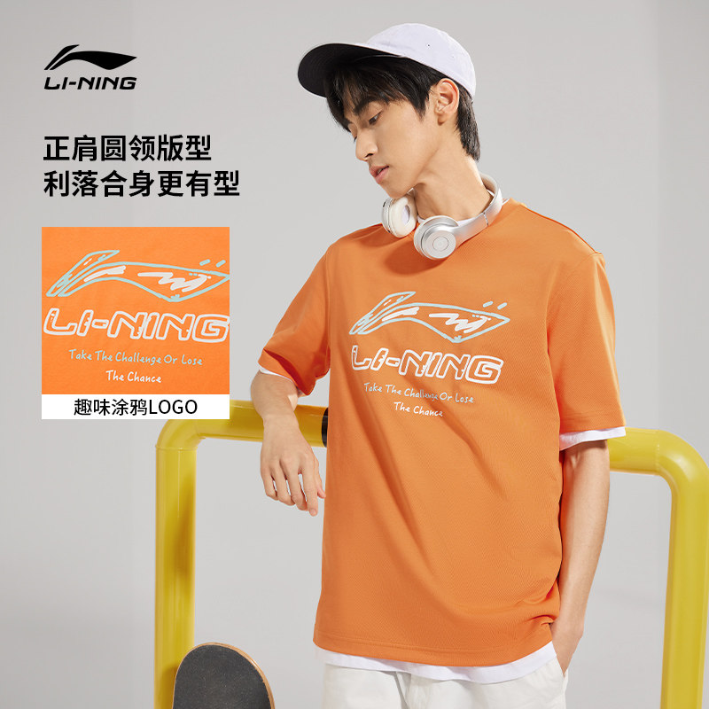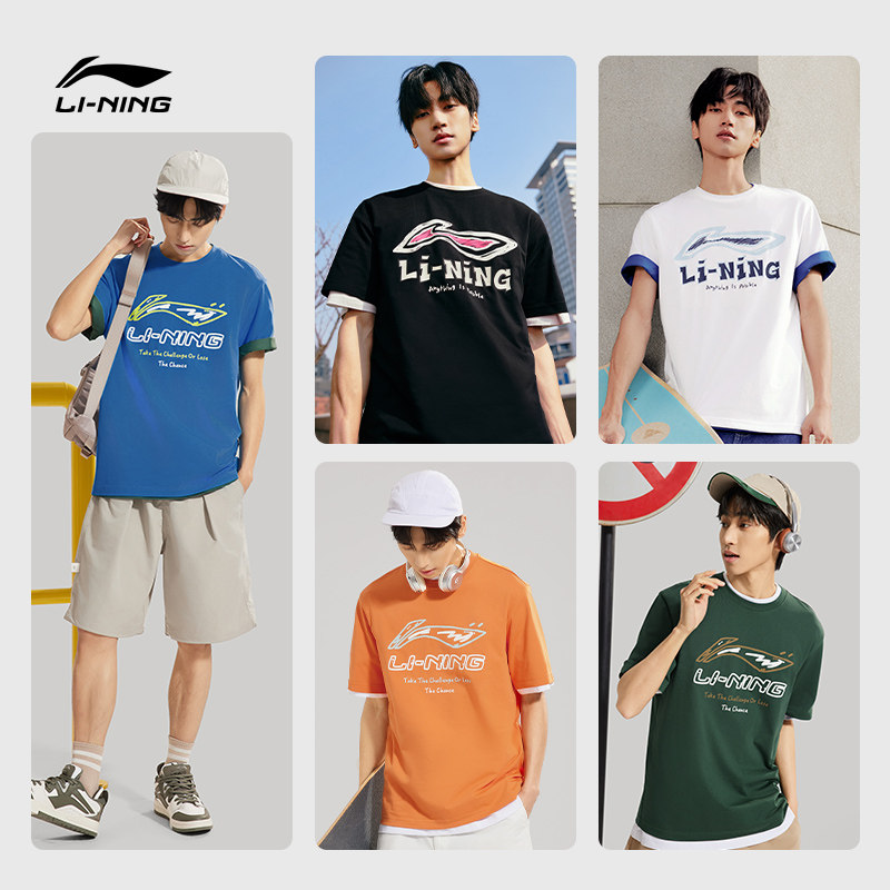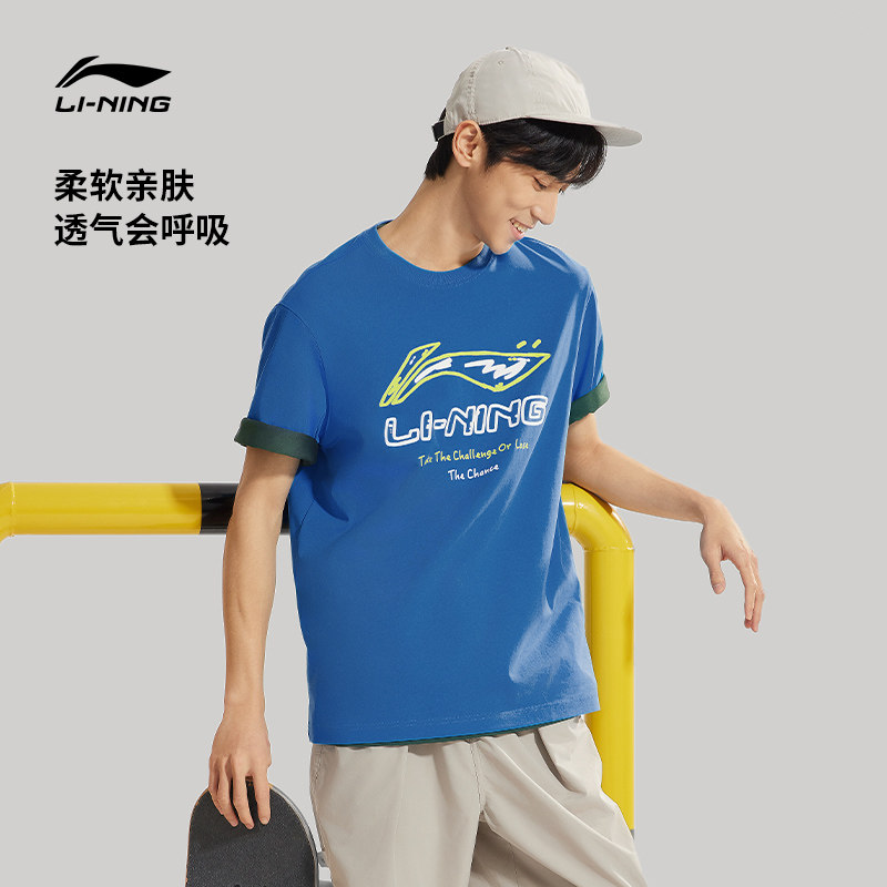 李宁短袖男士春夏官方半袖装运动上衣男装体恤宽松黑色T恤