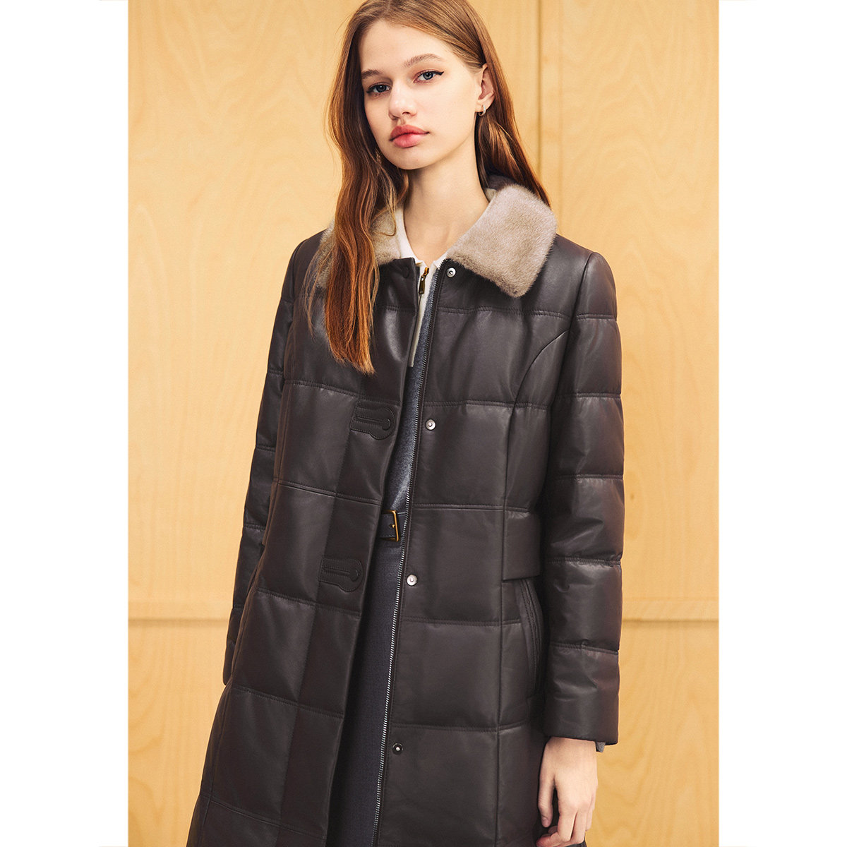 诗篇专选轻奢水貂毛领长款过膝真皮皮羽绒2026春季新款