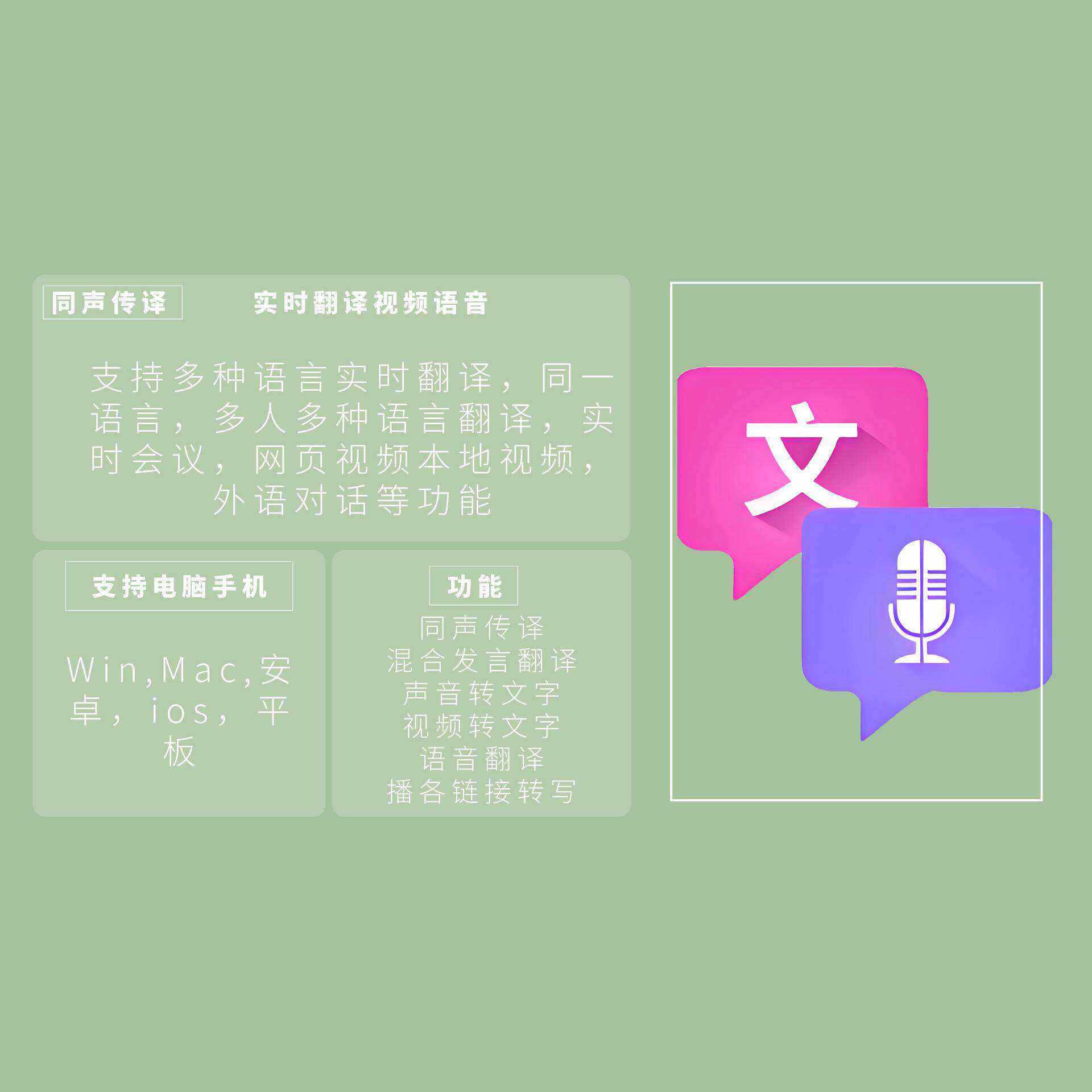 同声传译实时字幕翻译软件会议视频音频记录字幕翻译转文字