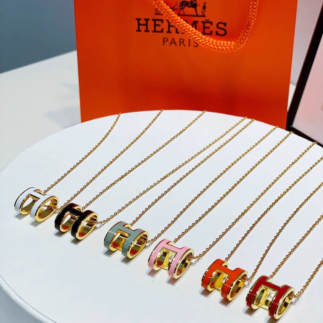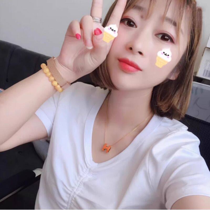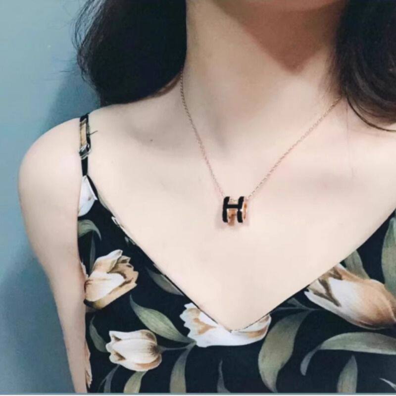 爱家高版H项链镀18k玫瑰金珐琅工艺锁骨链吊坠女网红工厂批发纯银