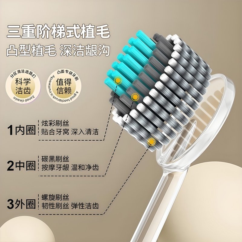 山型软毛牙刷凸面螺旋刷丝深度清洁家用高档成人情侣男女士专用
