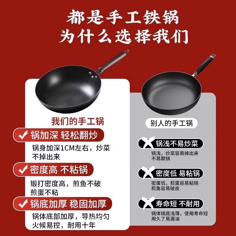 铁锅官方旗舰炒菜锅老式炒锅铁锅家用不粘锅无涂层燃气灶适用