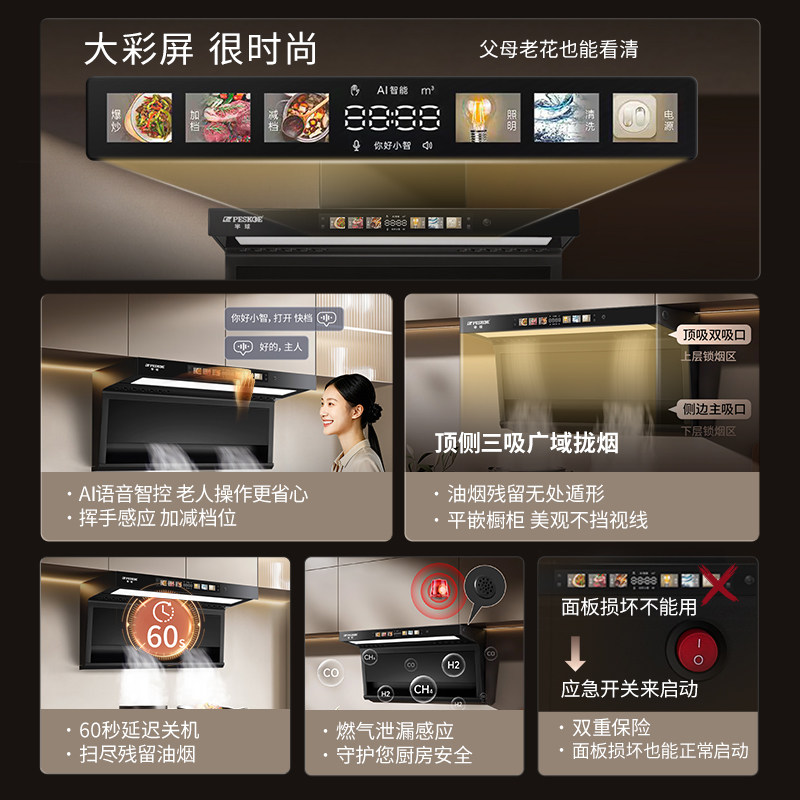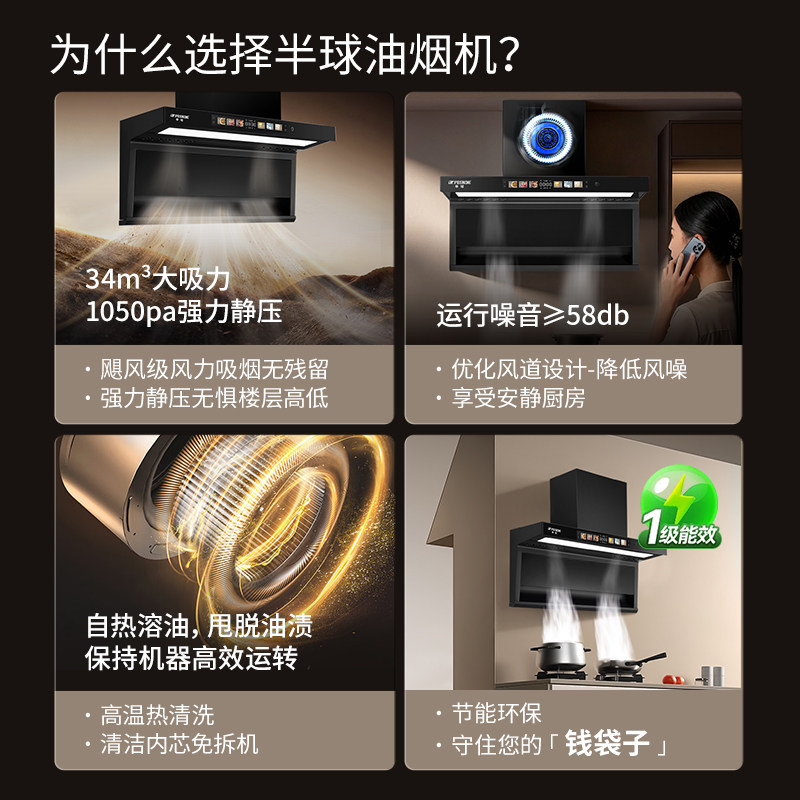 半球顶侧双吸厨房家用大吸力抽油烟机燃气灶灶具二件套套装一体