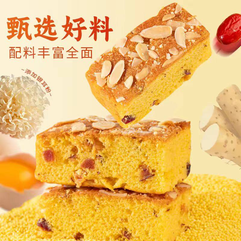小米山药苹果糕营养早餐鸡蛋糕代餐杏仁坚果夹心面包休闲零食品