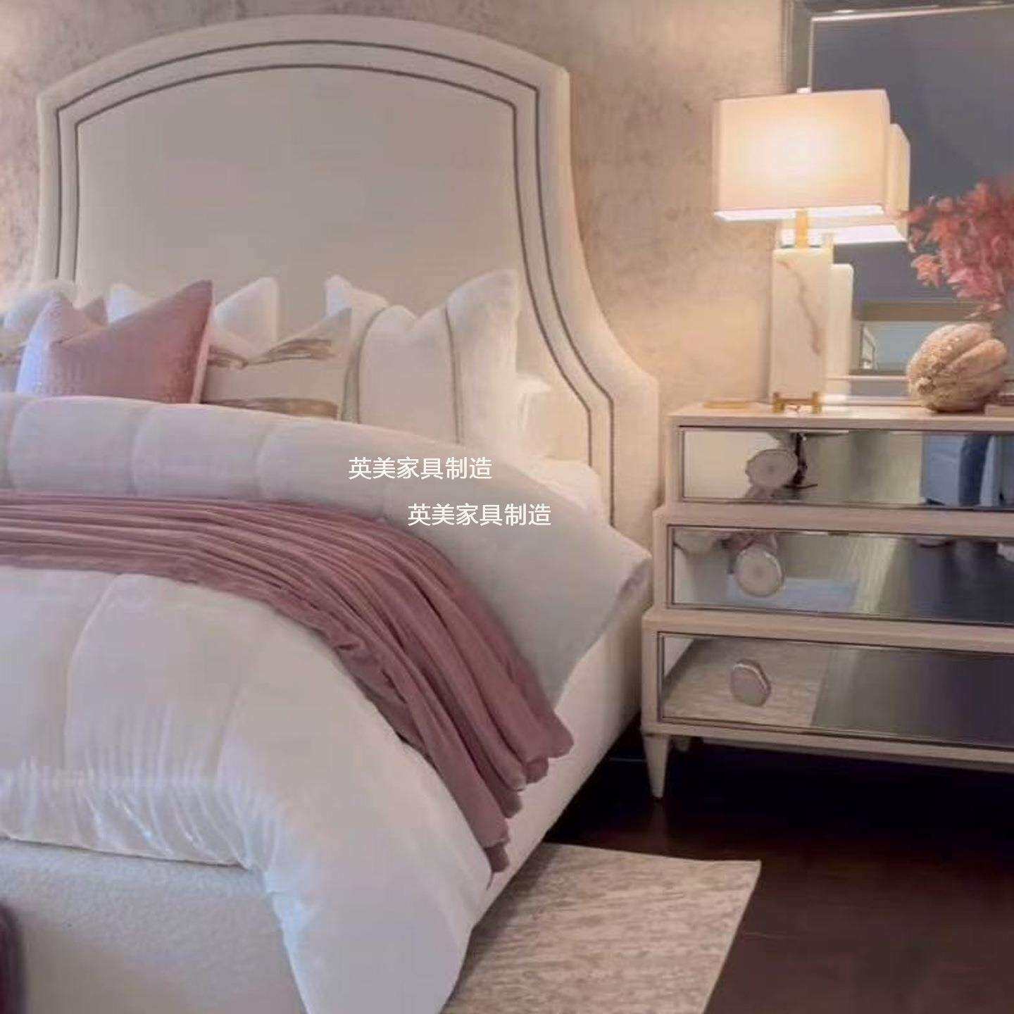 美式设计师卧室高背布艺双人床北欧异形1.8米酒店民宿主卧婚床