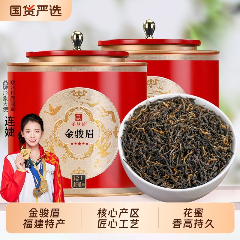 圣妙韵特级福建金骏眉茶叶金芽红茶罐装新茶自己喝送人礼品送长辈