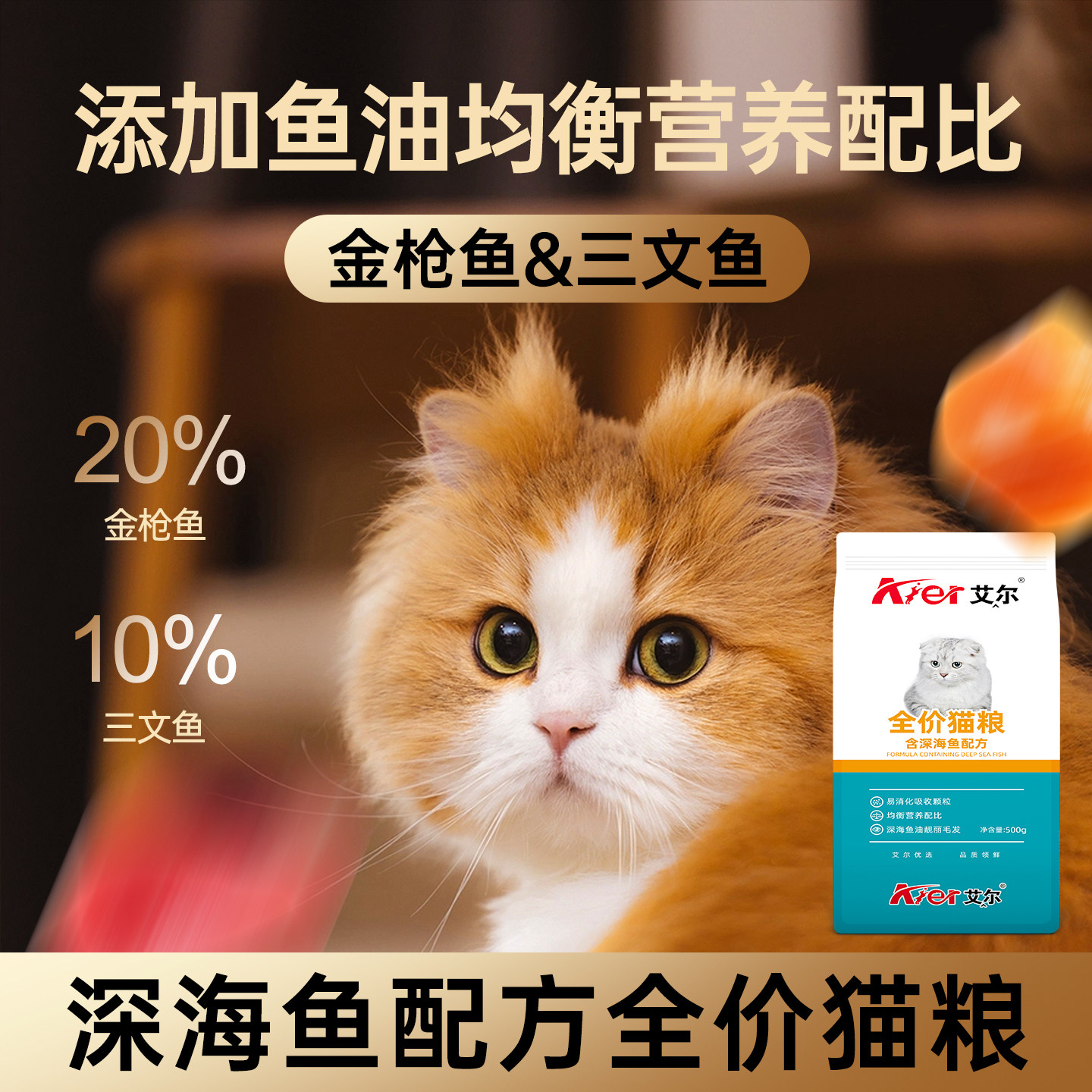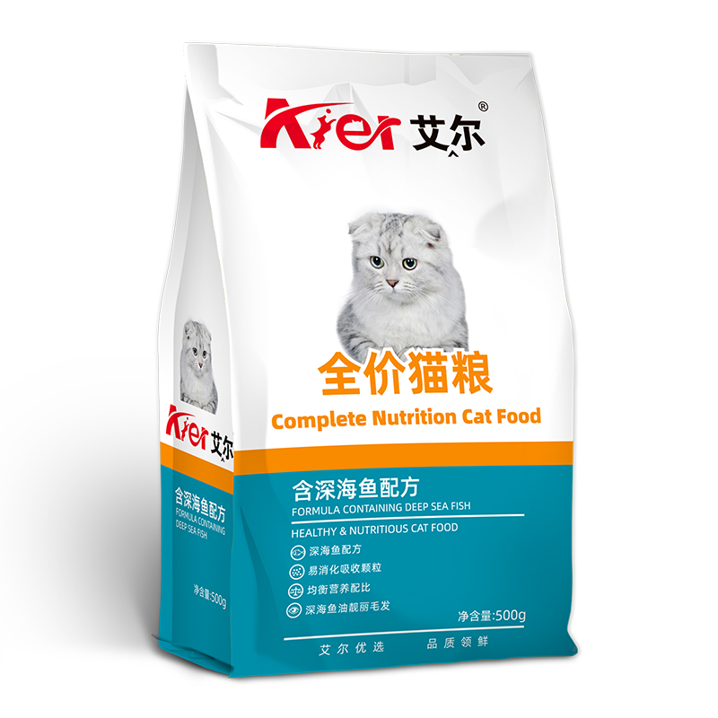 艾尔全价猫粮成猫幼猫营养家猫主粮小袋装深海鱼味英短猫粮500g