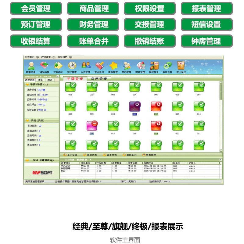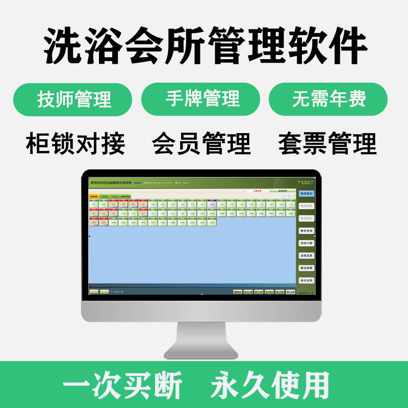 洗浴桑拿会所收银软件足疗足浴推拿排钟上钟宝柜锁会员系统软件