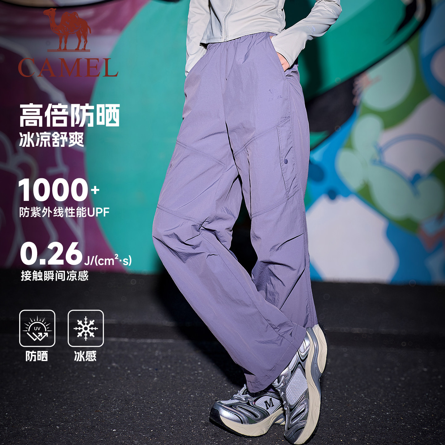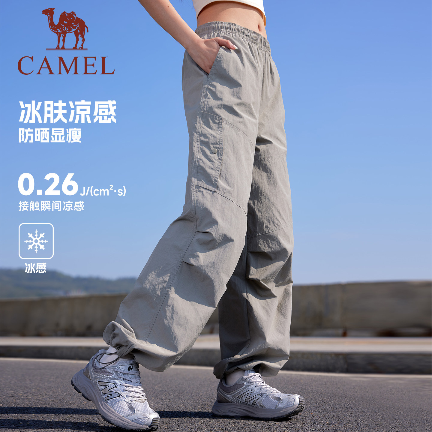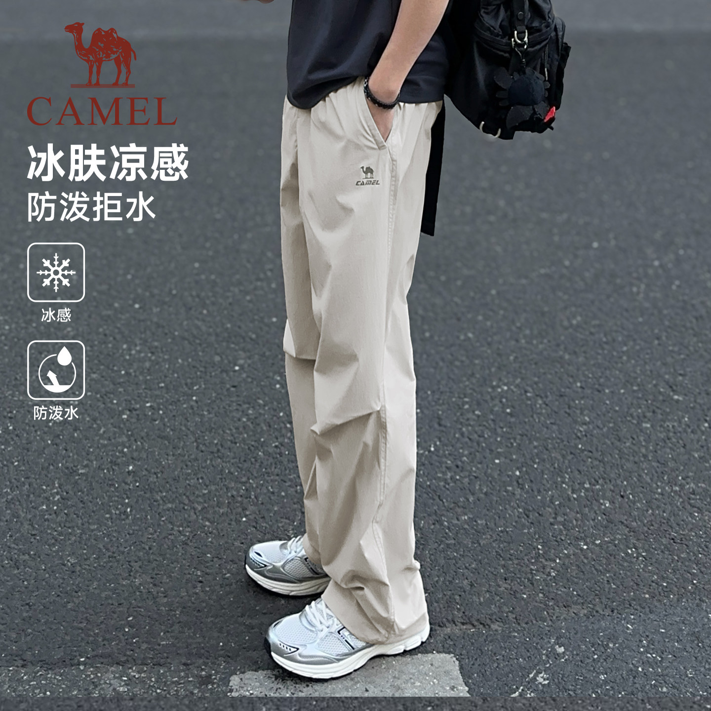 骆驼萌神运动工装裤女冰感防晒26夏季直筒休闲户外伞兵登山裤男