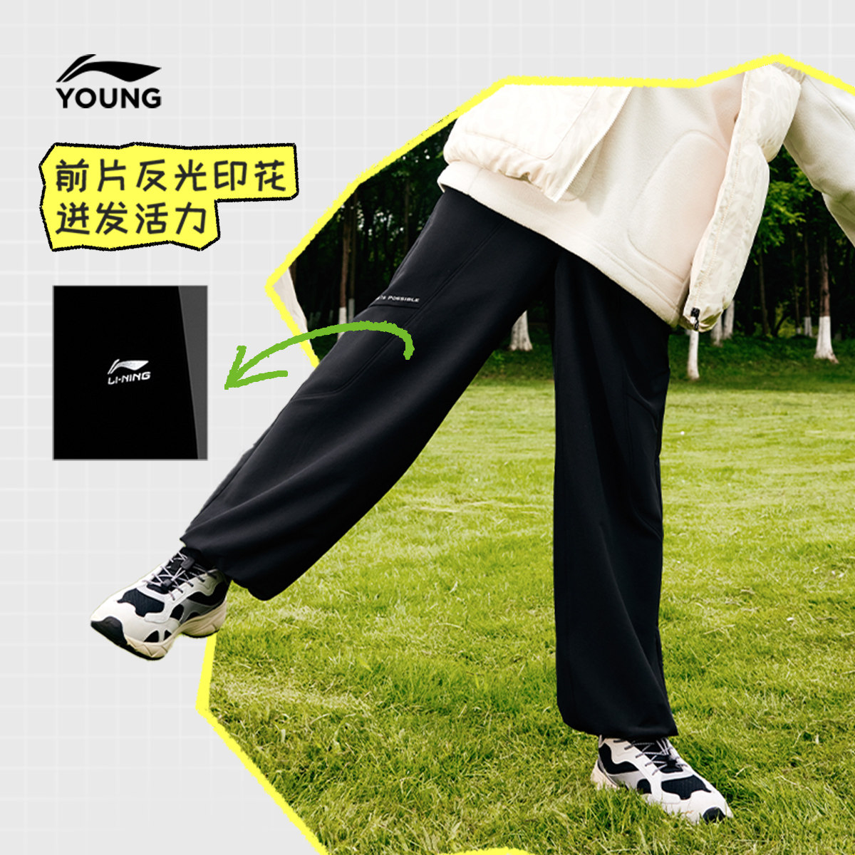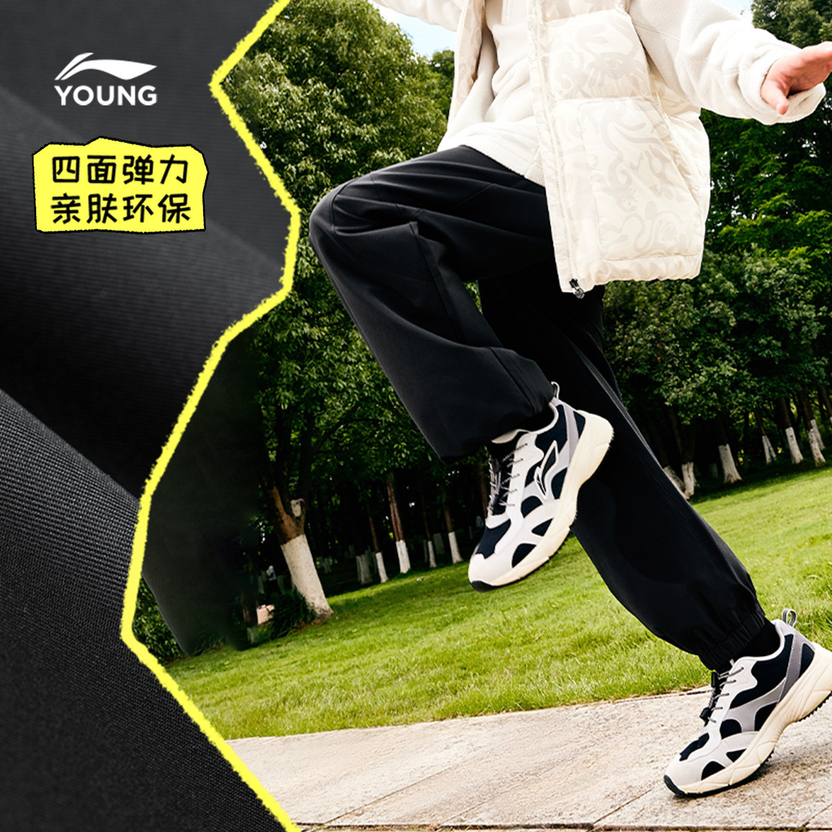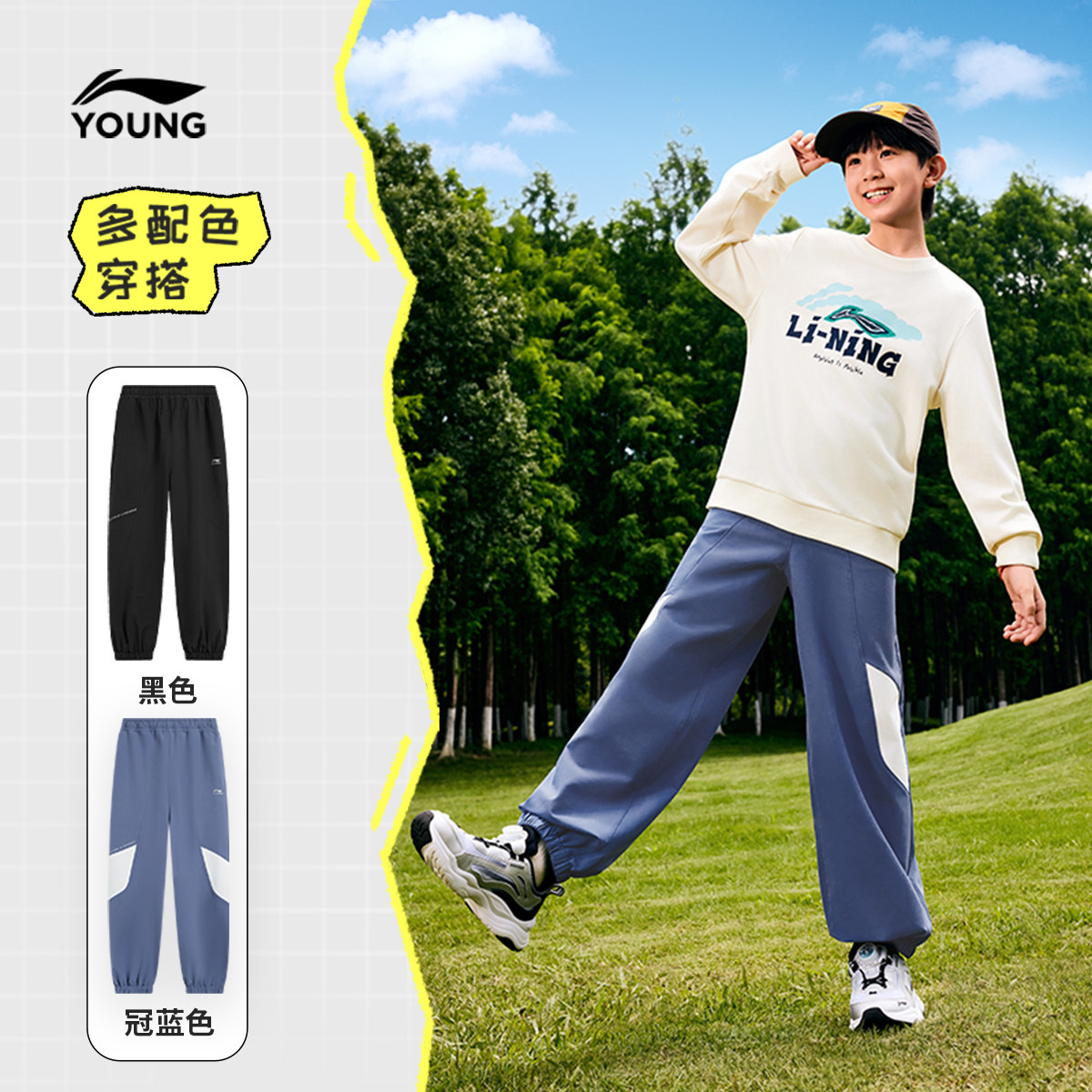 李宁儿童防泼水运动长裤男孩新款春夏款男童装女童中大童裤子春装
