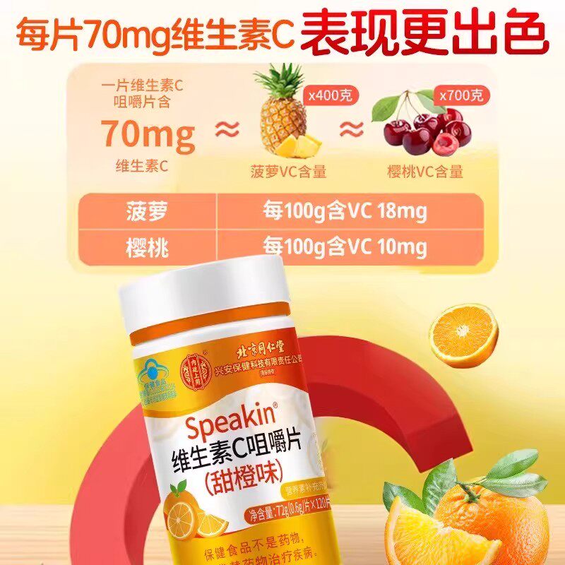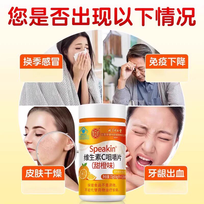 北京同仁堂维生素c咀嚼片多VC官方旗舰店增强儿童免疫力维生素C