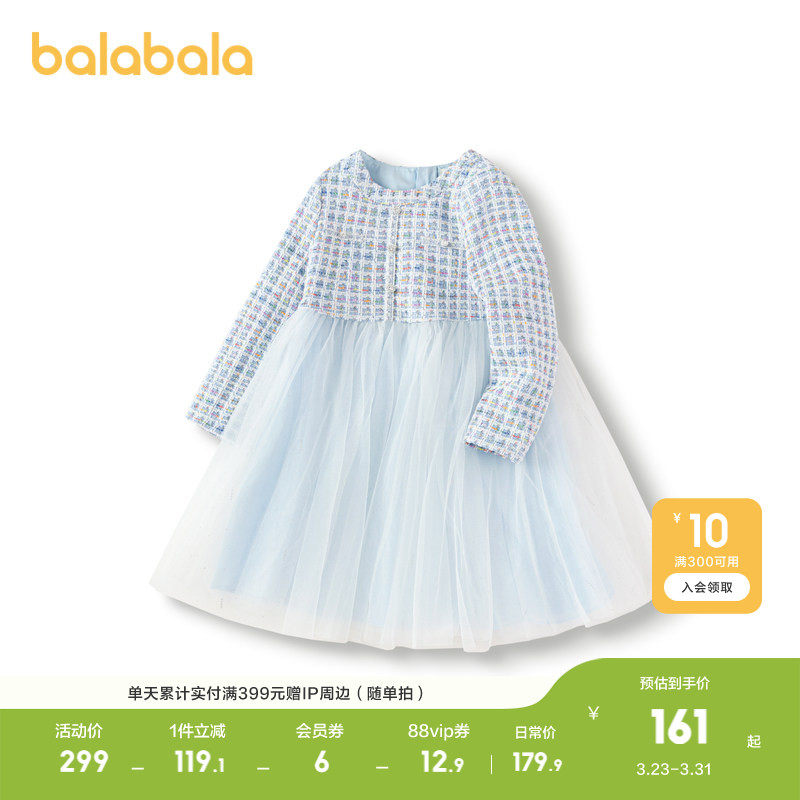 【balaOne】巴拉巴拉童装女童连衣裙2025新款春装网纱裙甜美洋气