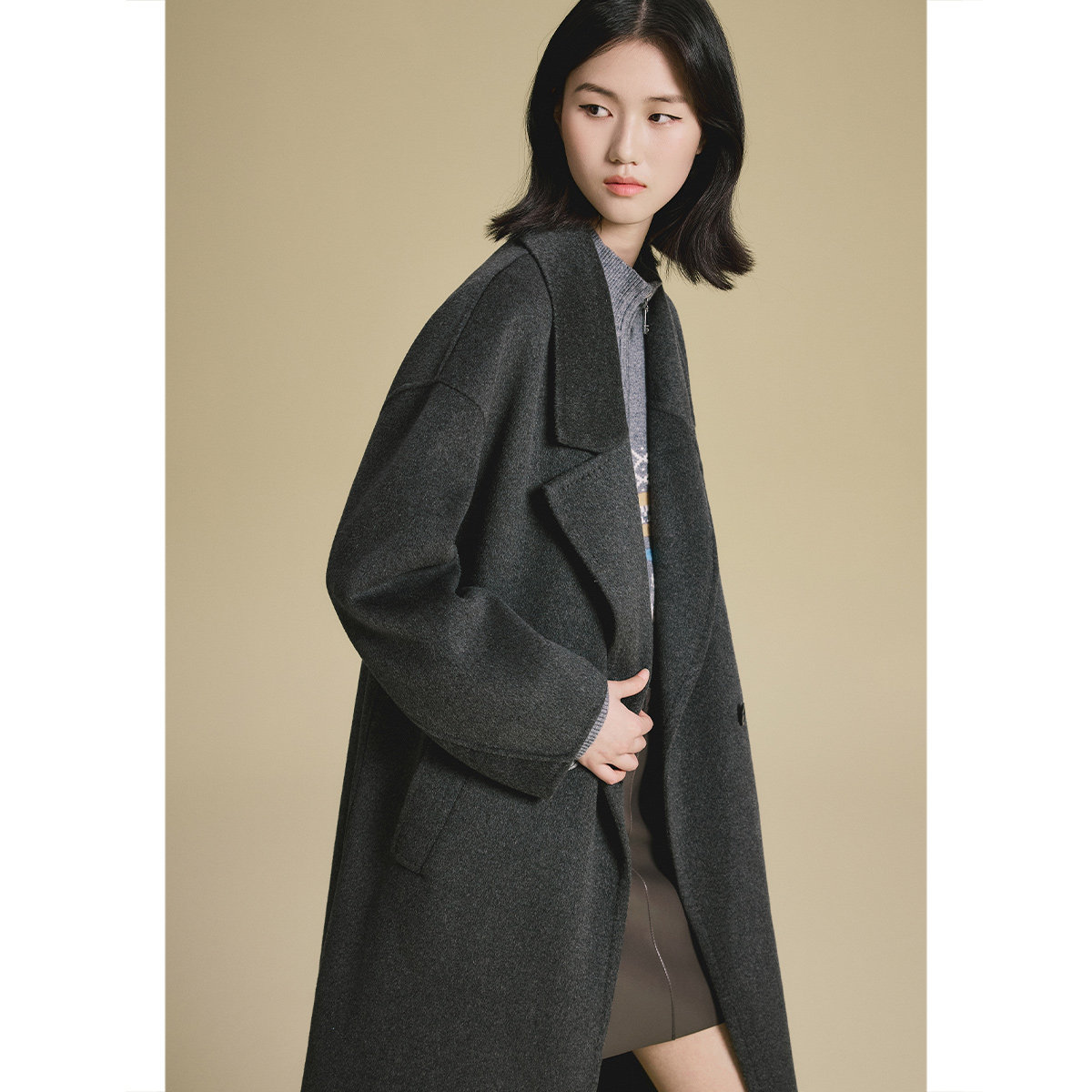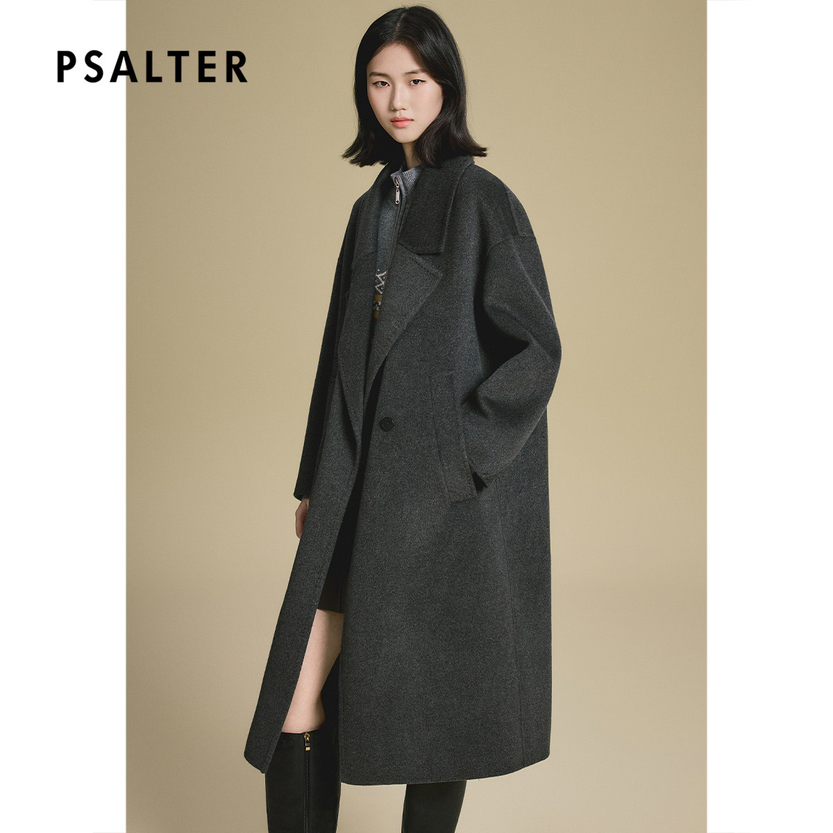 诗篇专选山羊绒桑蚕丝混纺双面呢西装领大衣外套2025秋款