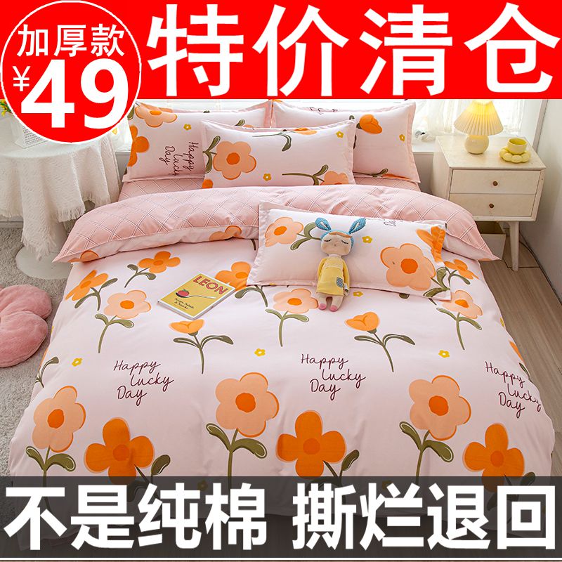 ins四件套被套被罩床单床上用品学生宿舍单人非纯棉全棉三件套冬4