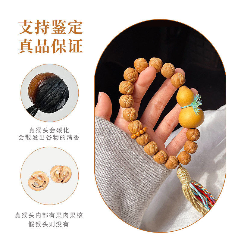 野生雕刻卷卷酥猴头手串男女士手工拉丝原籽核桃文玩佛珠手持手链
