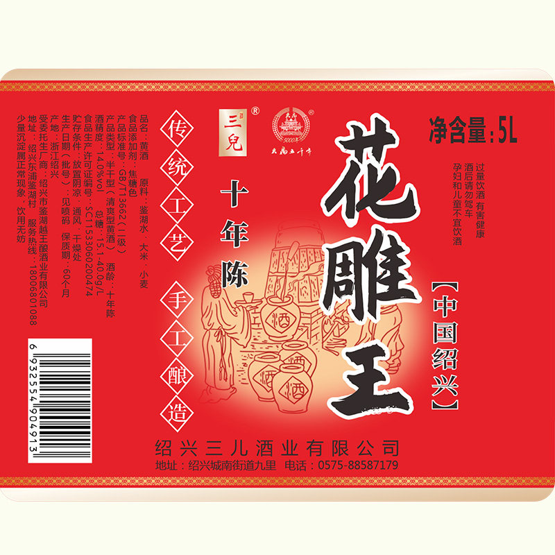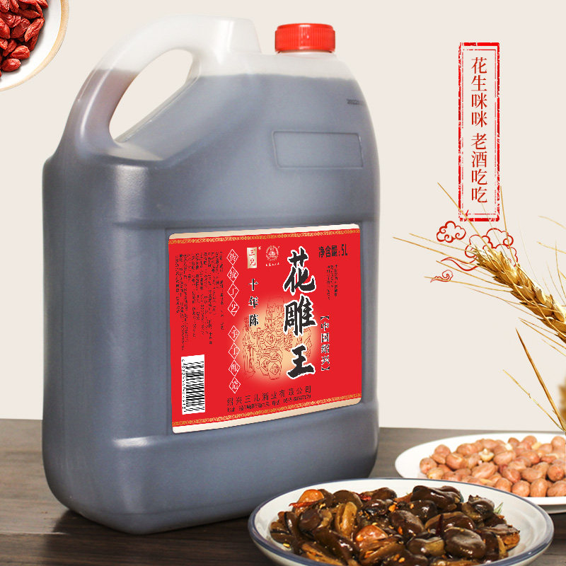 绍兴产黄酒十年陈花雕酒5L桶装老酒坛装料酒阿胶酒业大桶烹饪十斤