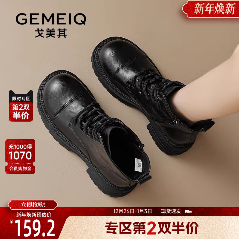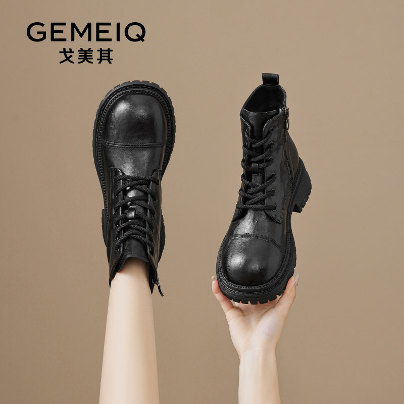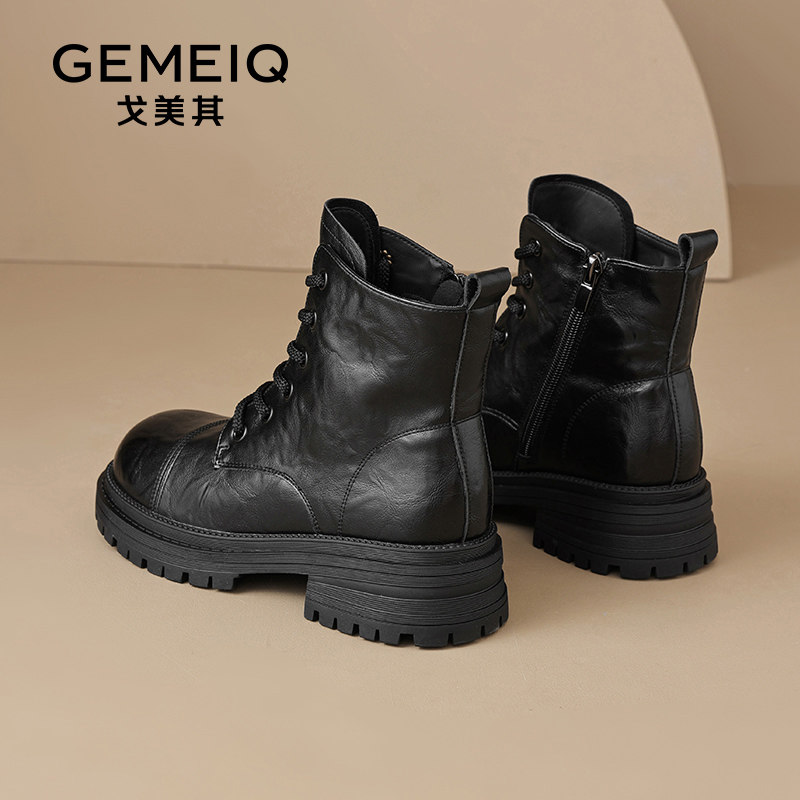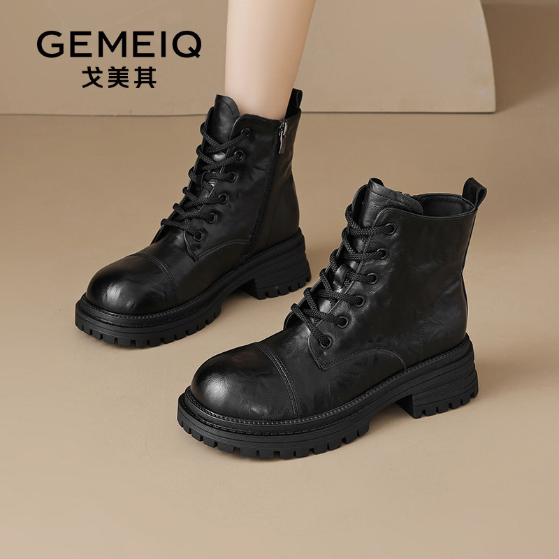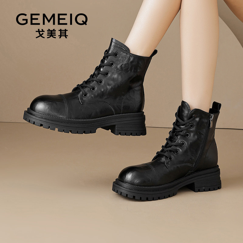 戈美其加绒马丁靴女厚底舒适新款春秋潮酷机车靴子复古英伦风短靴