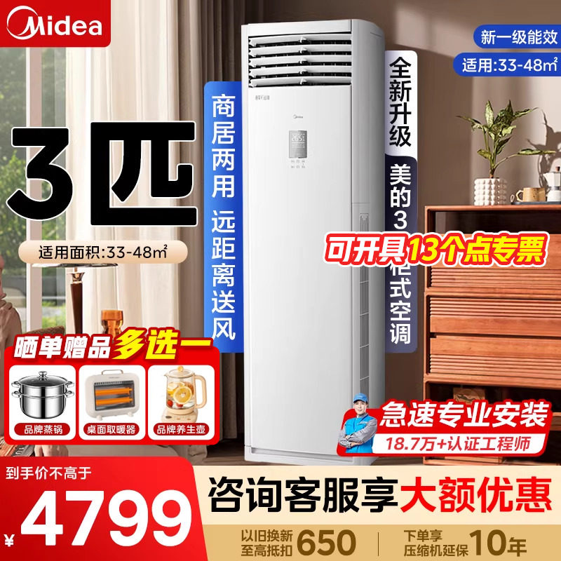 美的空调3匹柜机变频鲜逸二代立式方柜机商用家用冷暖两用旗舰