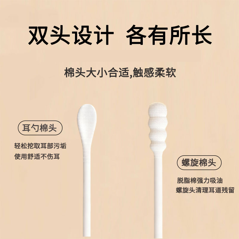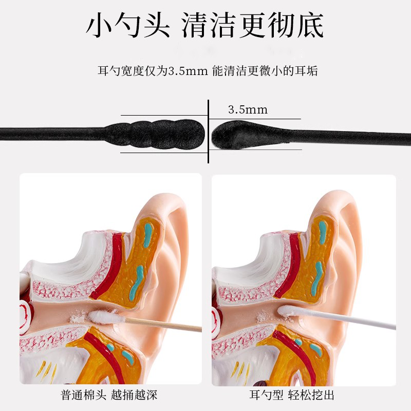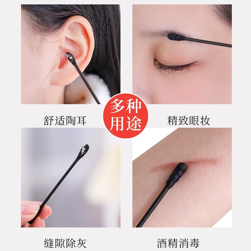 掏耳朵专用棉签黑色双头一次性挖耳勺棉花棒棉棒尖头化妆棉签工具