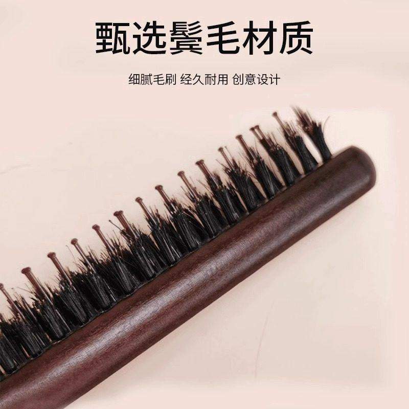 猪鬃毛梳子女打毛尖尾窄齿蓬松卷发化妆师专用三排梳细齿美发马尾