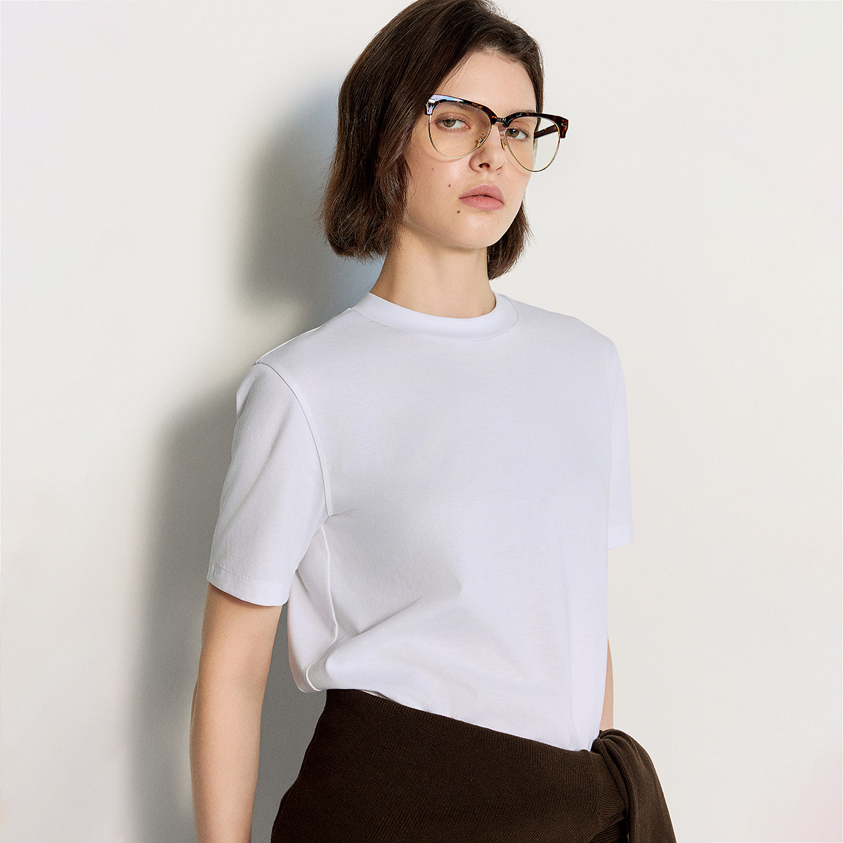 【季末折扣】欧时力 100%棉短袖t恤上衣白t休闲透气2025夏季新品