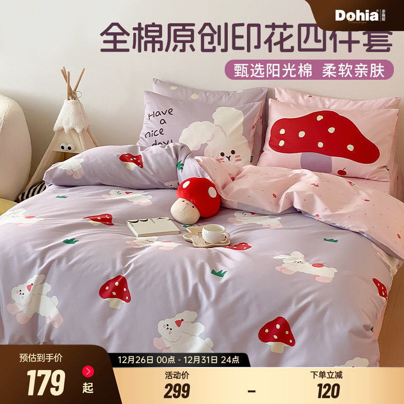 多喜爱四件套纯棉三件套学生宿舍床品卡通纯棉床笠被罩床单被套女