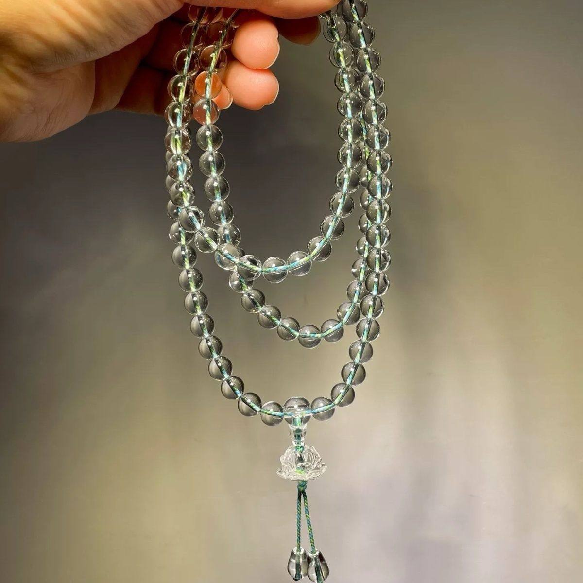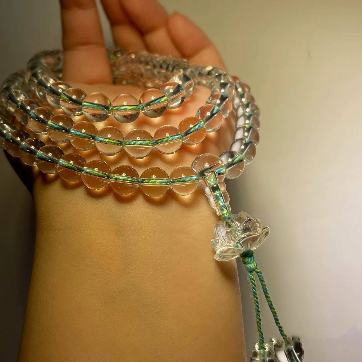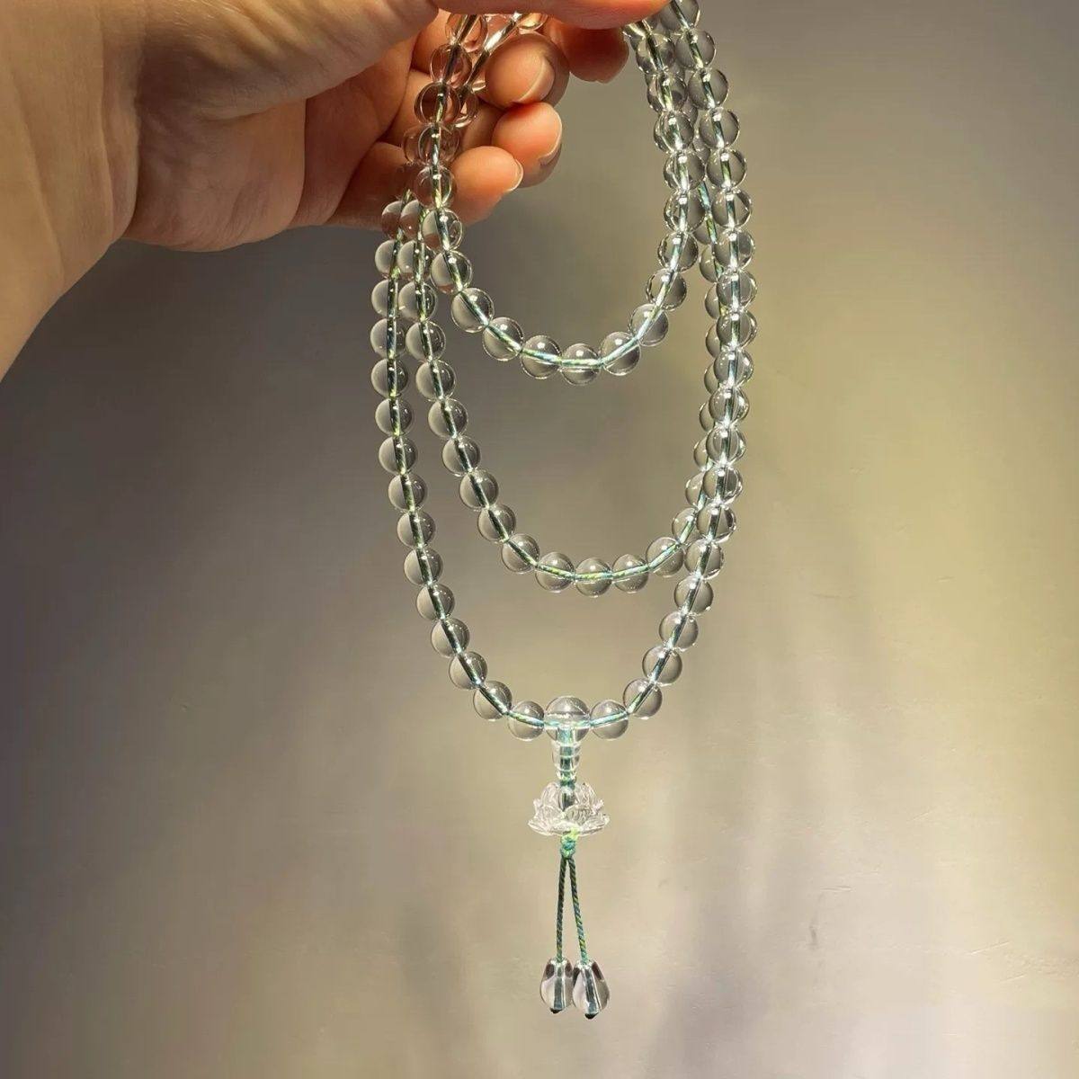 合成水晶108白水晶佛珠莲花手链多圈男女念珠手串手持天然白水晶