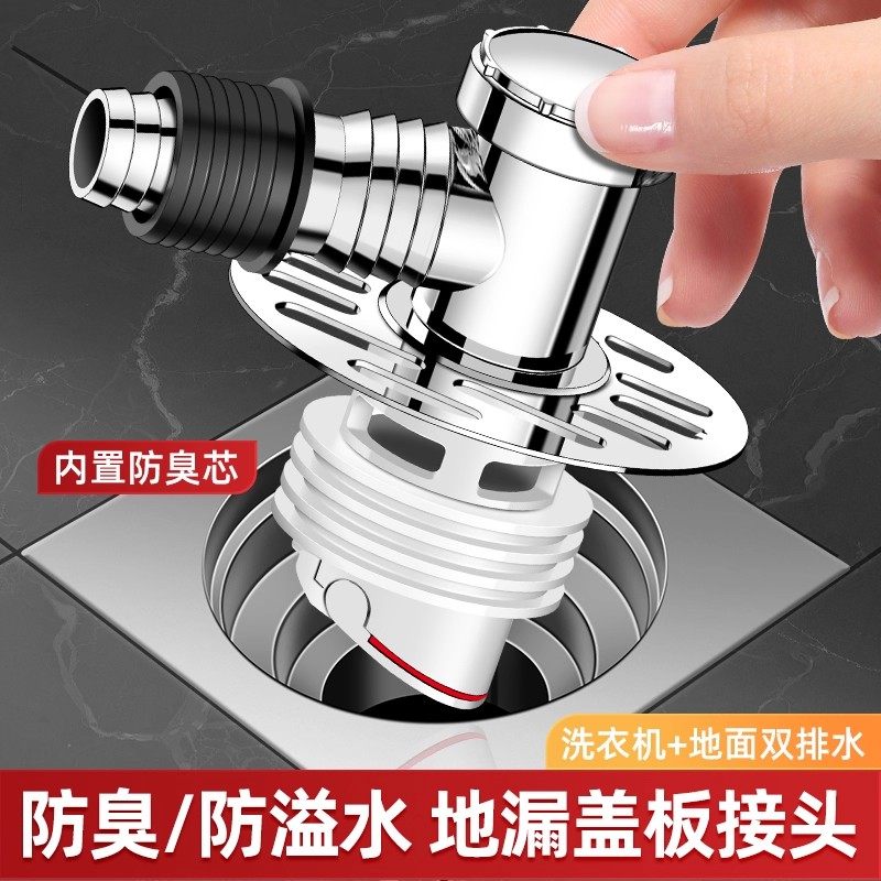 洗衣机下水管三头通地漏专用接头排水防臭卫生间直通防溢水地面