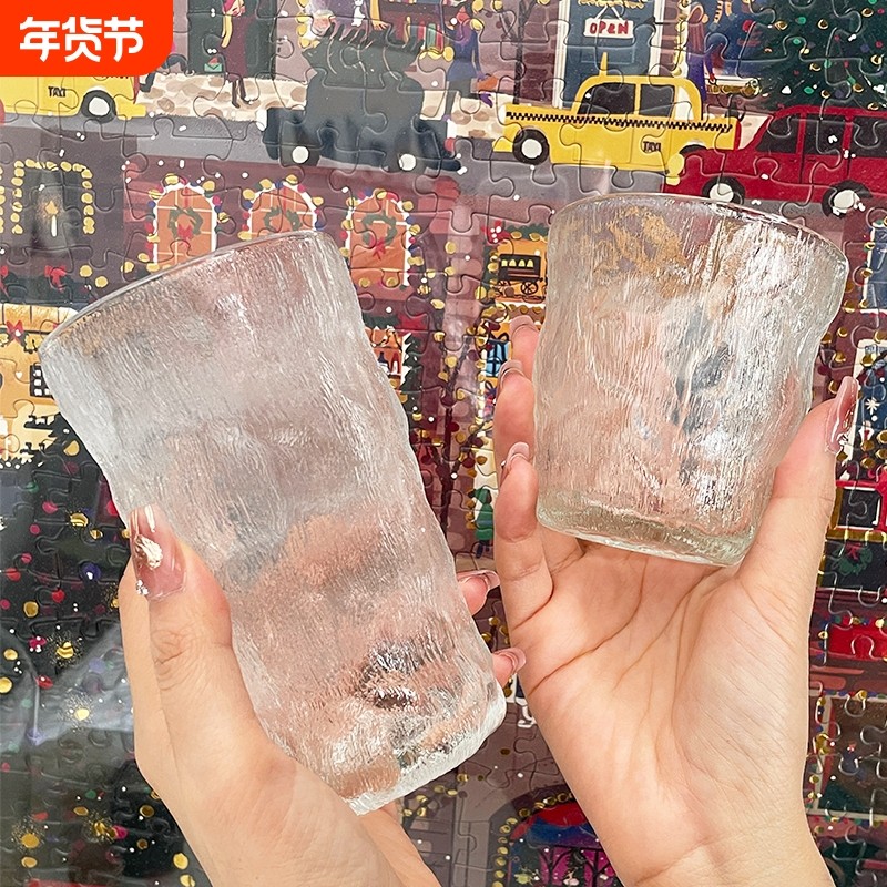 冰川杯纹玻璃杯高颜值水杯女果汁饮料杯子ins风树纹咖啡杯啤酒杯