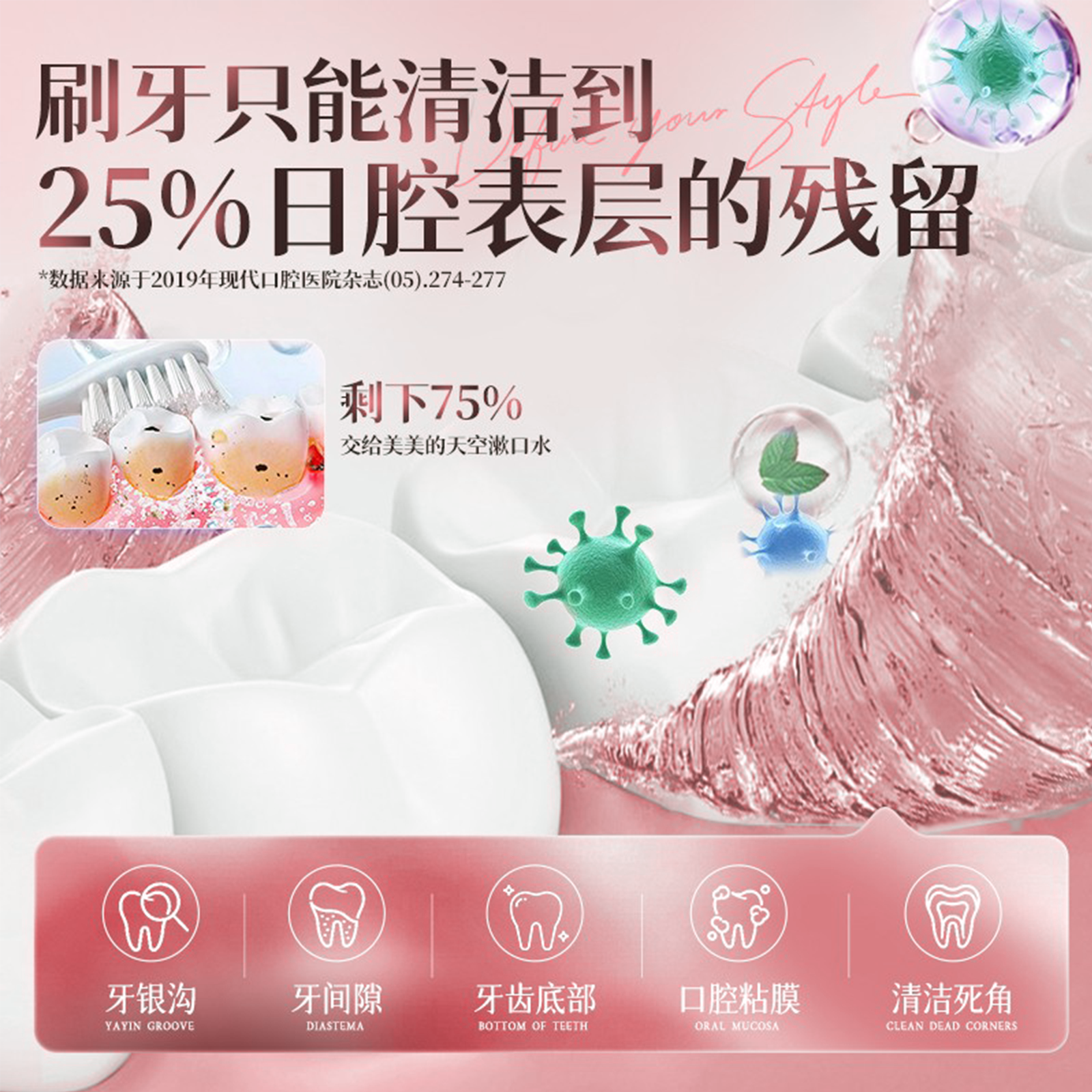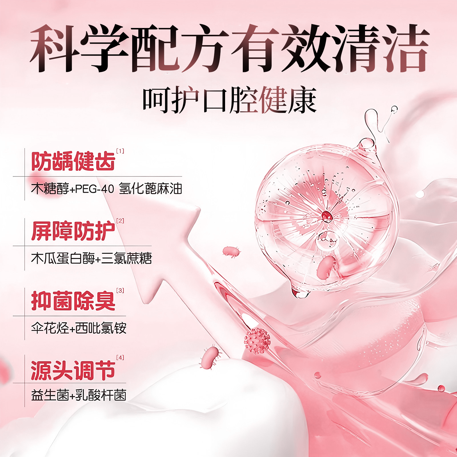【张杰同款】白惜抗漱口水补充装益生菌持久留香护龈防蛀便携清新