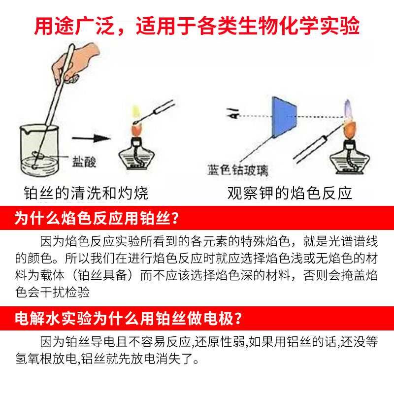 铂丝化学实验焰色反应铂丝电极Pt铂金丝0.1mm0.2mm0.3mm0.5mm1mm