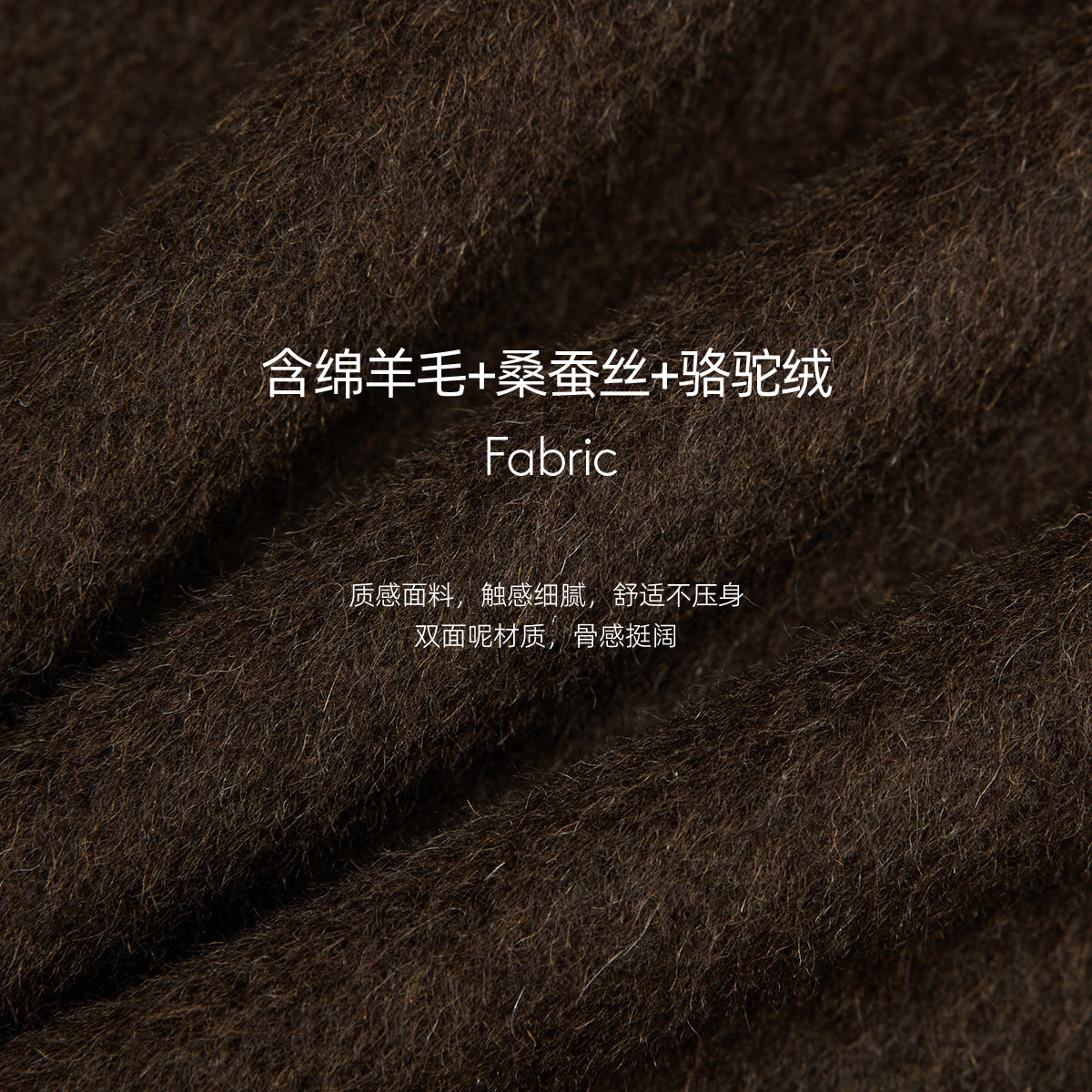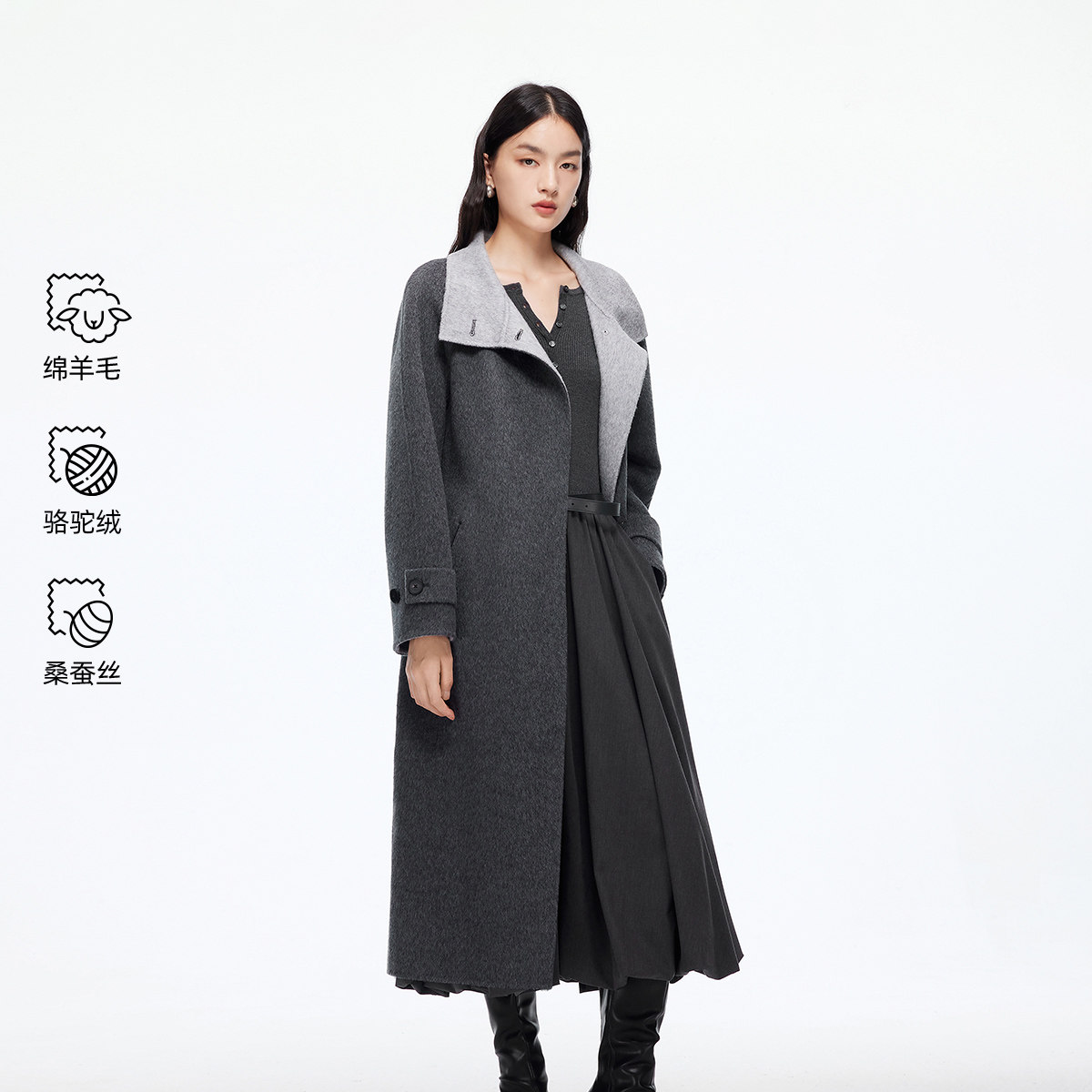 RUISHI芮时重磅驼绒桑蚕丝羊毛慵懒两穿领灰色毛呢大衣秋冬外套女