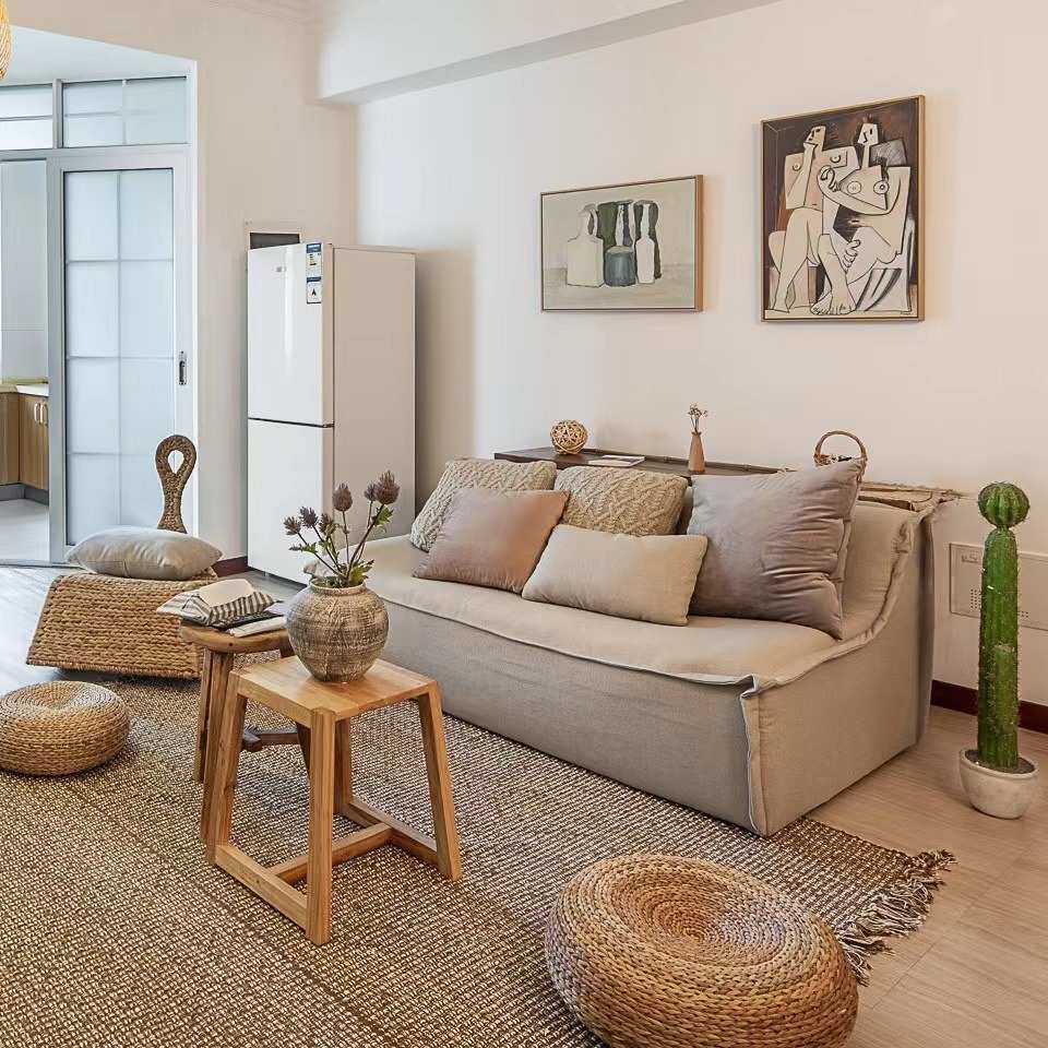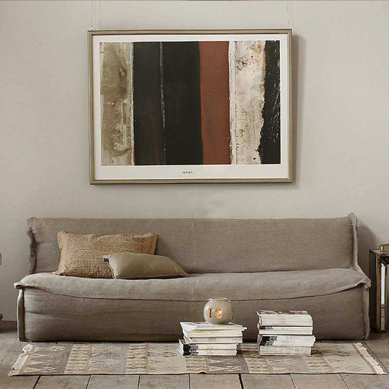 客厅布艺三人简约现代复古布艺沙发无扶手全实木北欧小户型
