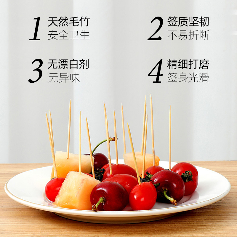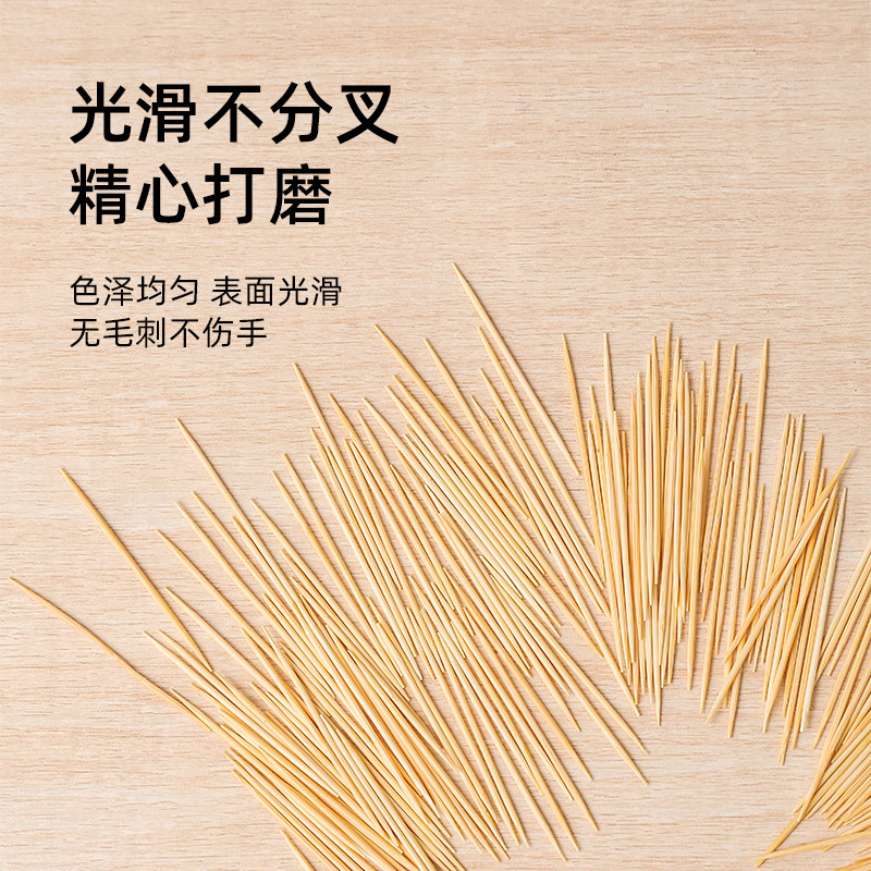 一次性头层竹牙签盒家用酒店商用餐厅饭店双头单头尖细竹制剔牙桶