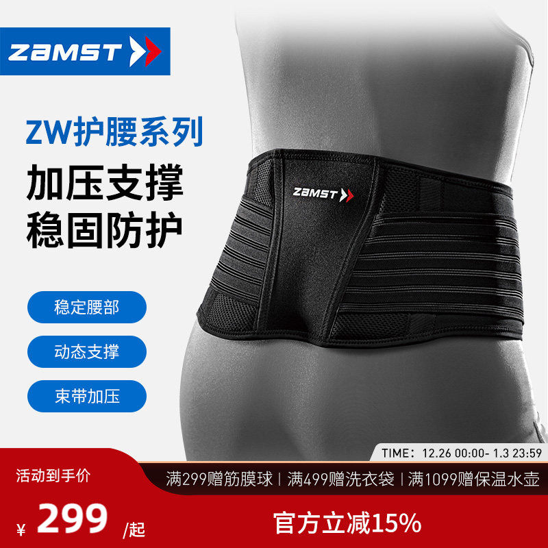 ZAMST/赞斯特运动护腰轻薄透气健身训练篮球排球男女支撑腰带ZW-5